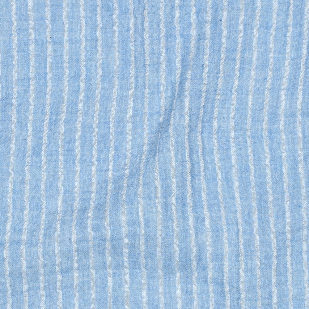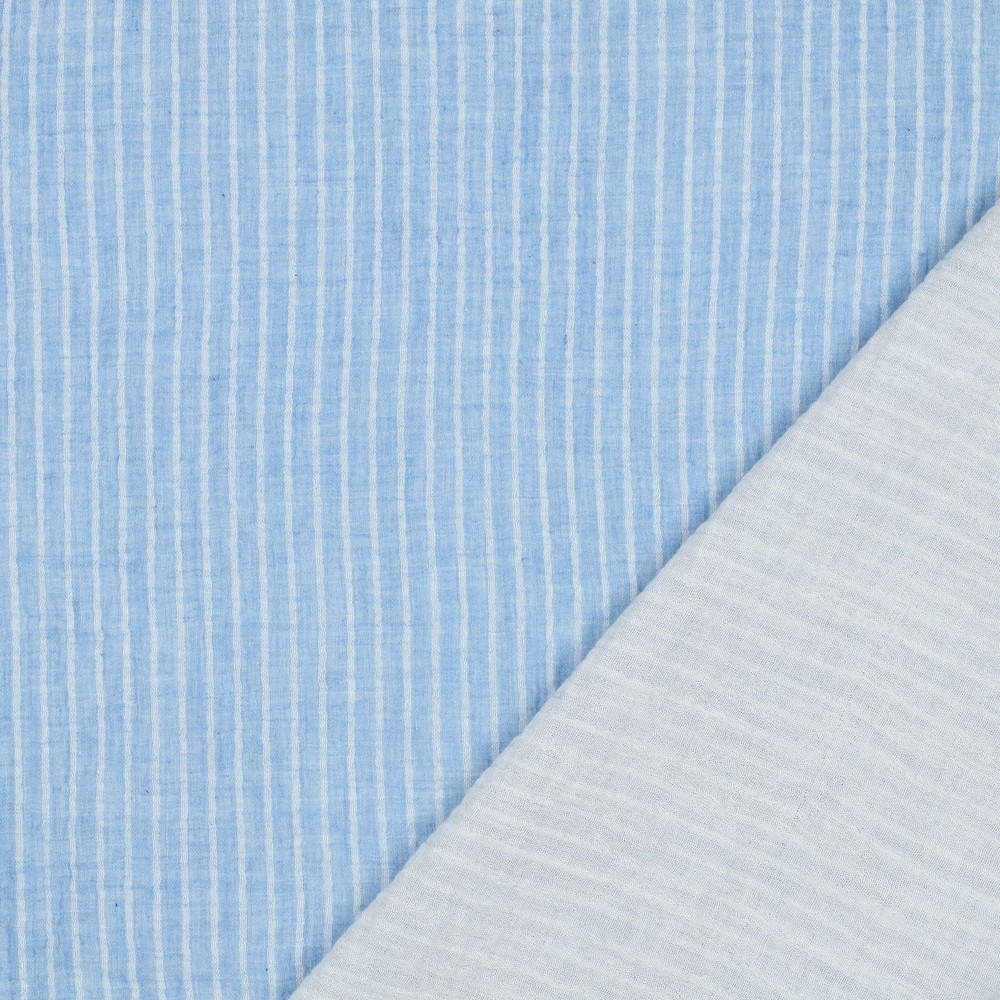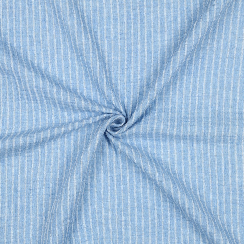 Katoenen mousseline - dubbele gaasstrepen lichtblauw