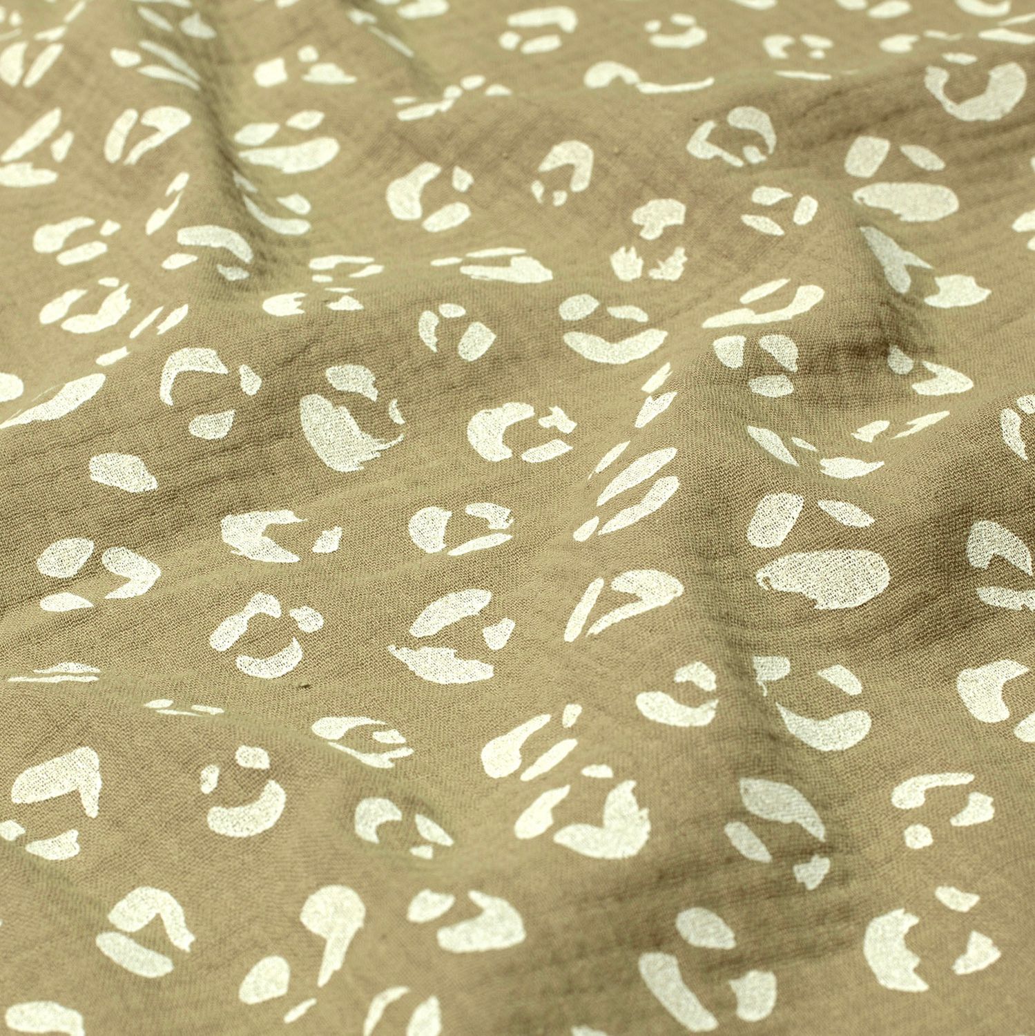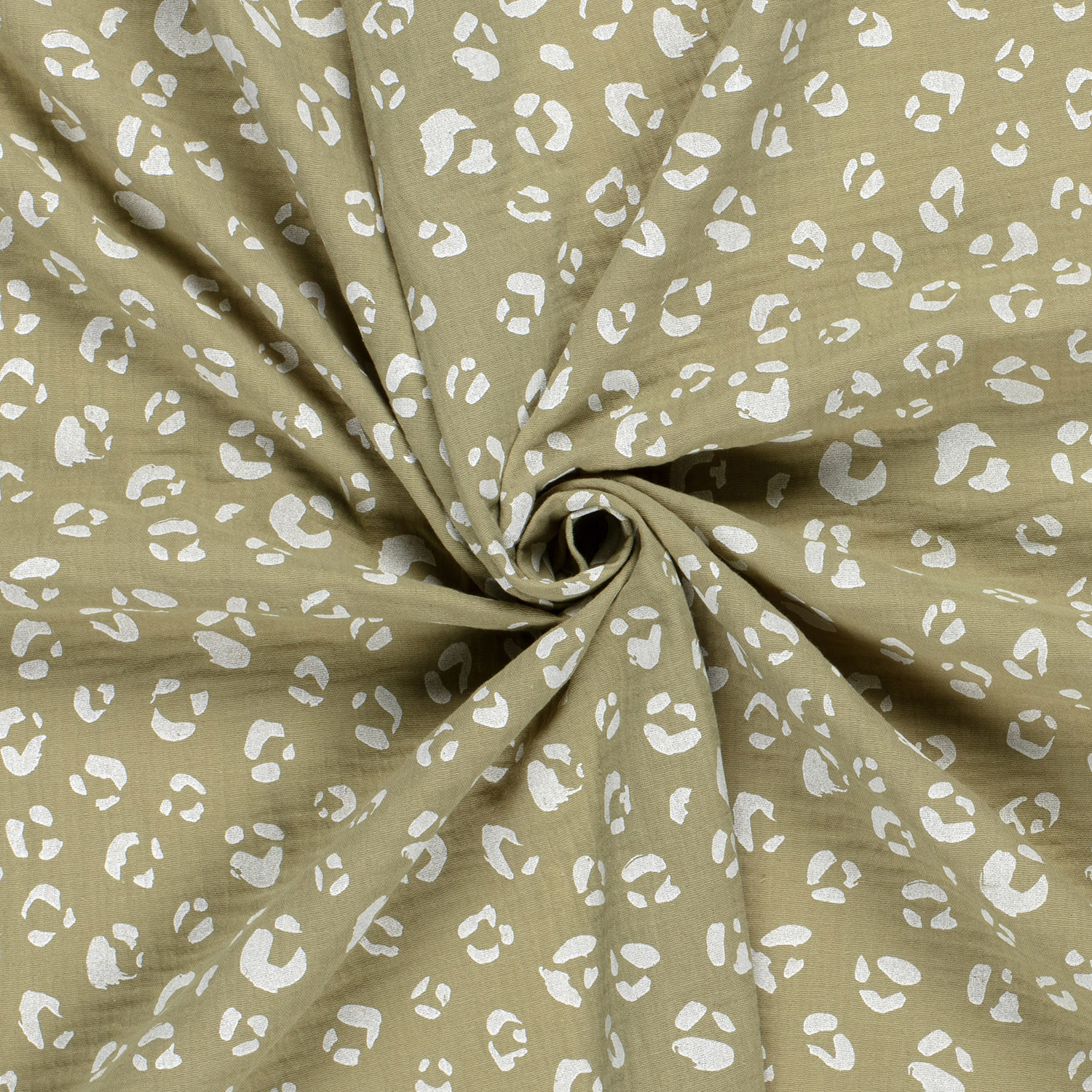 Katoenen mousseline - Luipaardmotief olijfgroen