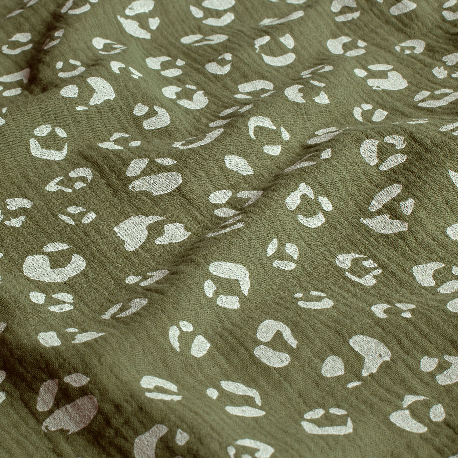 Of het nu luchtige blouses, gezellige sjaals, zomerse jurken, babydekens of knusse kussens zijn – deze mousseline is veelzijdig inzetbaar en past perfect bij natuurlijke, eenvoudige outfits evenals bij gedurfde combinaties. Het subtiele luipaarddesign is trendy maar niet opdringerig en maakt de stof tot een echte favoriet voor jong en oud.