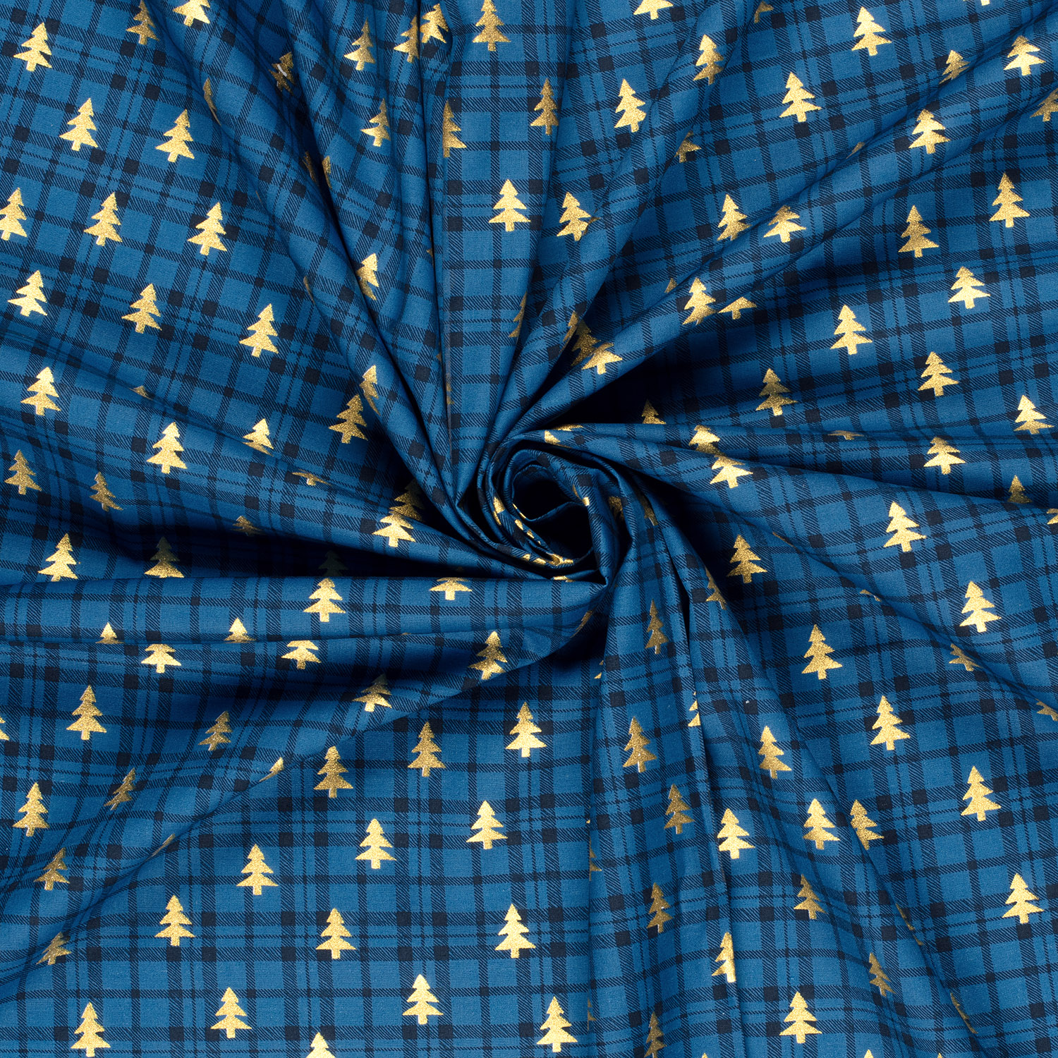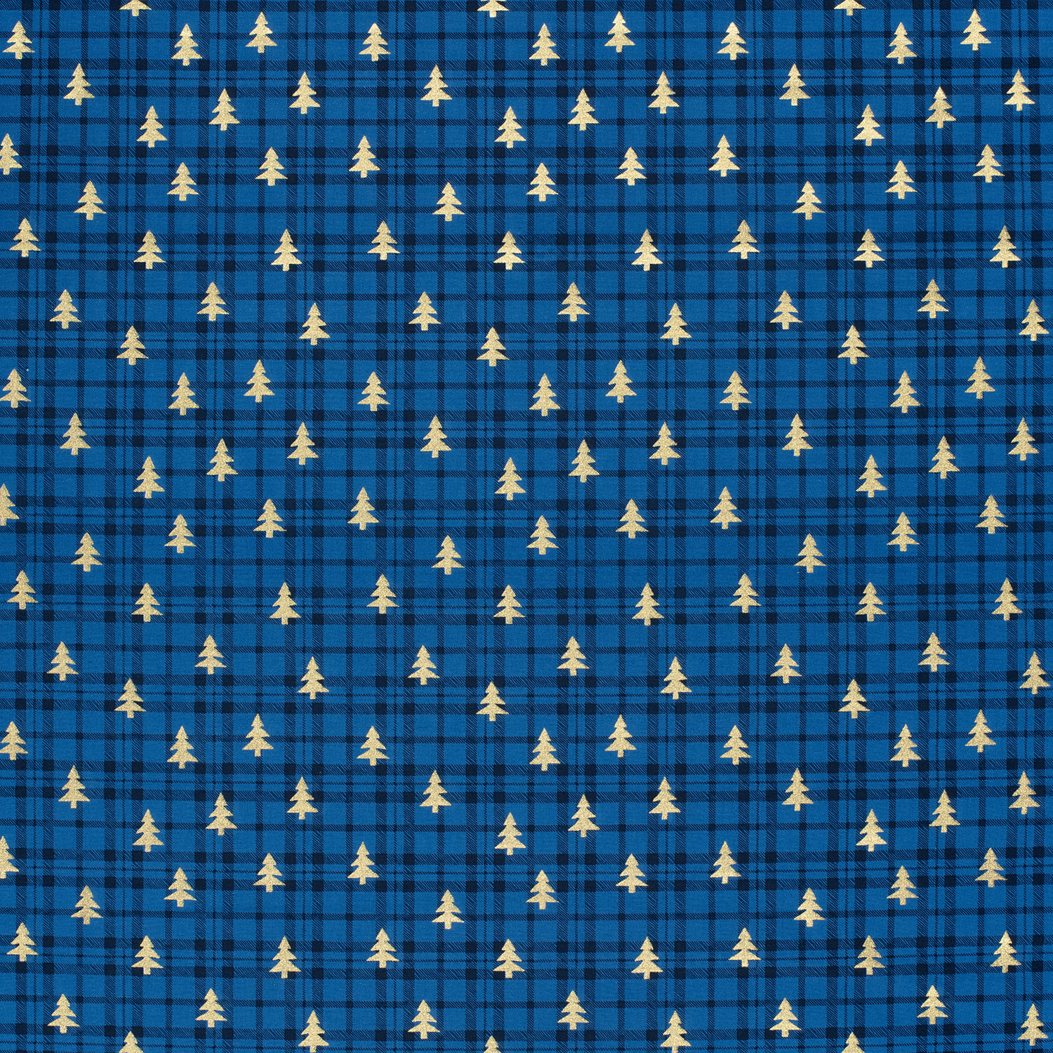 Katoenen popeline - Kerstbomen ruit koningsblauw goud