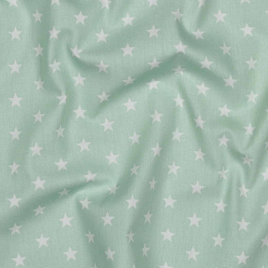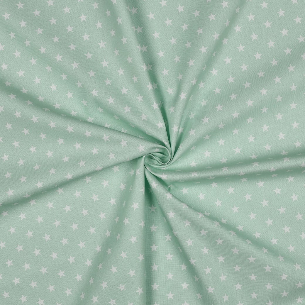 Katoenen popeline - Sterren Mint Wit