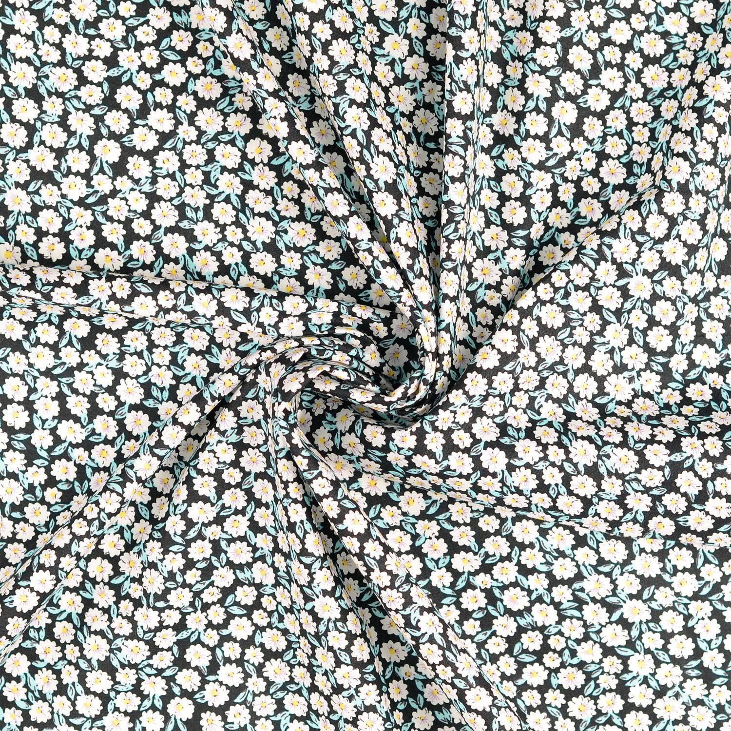 Katoenen popeline - Zwarte kleine bloemetjes