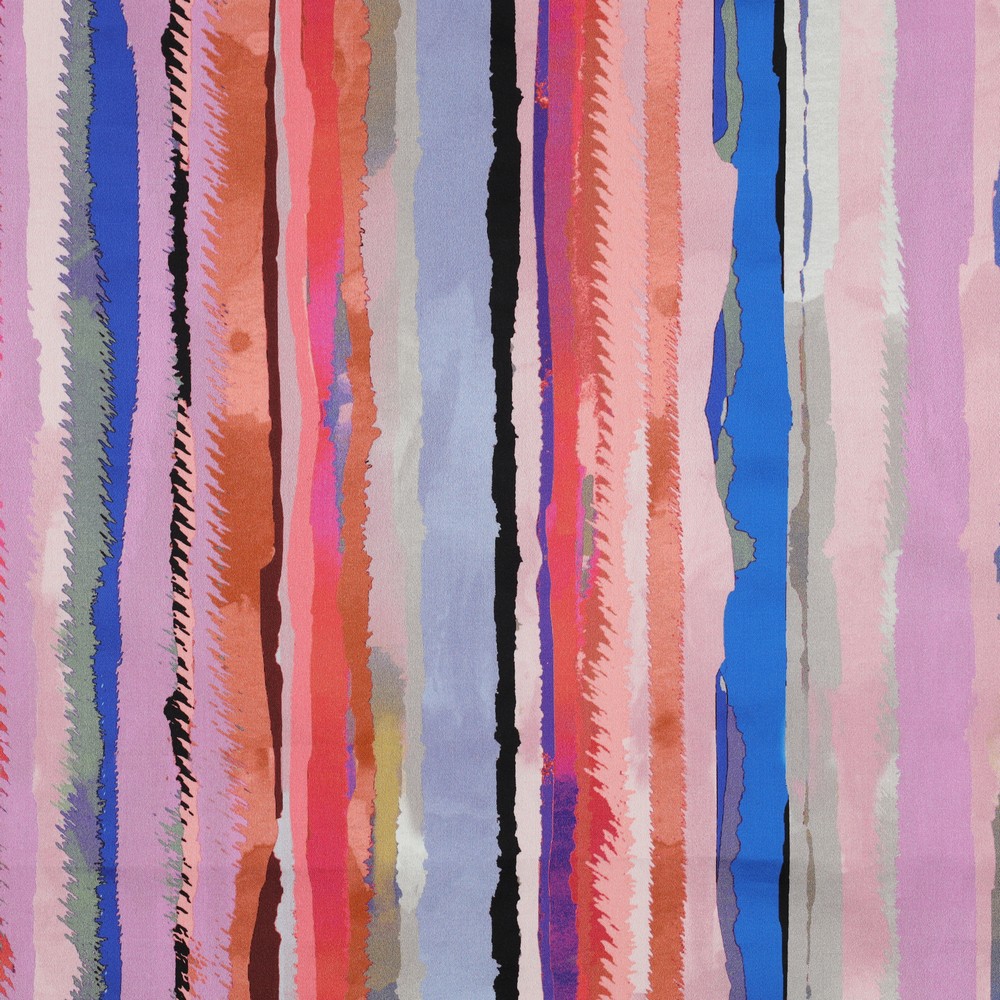 Deze elegant glanzende katoenen satijn brengt kleur en vrolijkheid in elk naai-project. Het ontwerp toont harmonieus op elkaar afgestemde strepen in vrolijke multicolor tinten – van warme geel- en oranje nuances tot levendige roze en rode tinten en fris blauw en zacht groen.