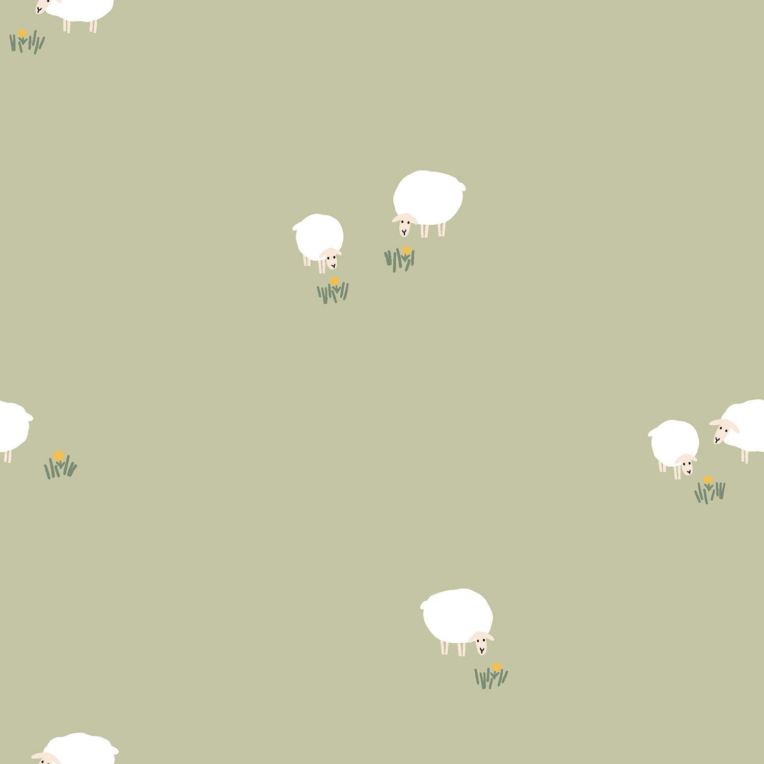 Een zacht lichtgroen als een sappig lentebos vormt het decor voor deze schattige schaapjes. Soms liggend, soms staand, met liefdevolle details getekend, dringen ze dicht op elkaar over de hele stof en verspreiden meteen een goed humeur. De subtiele, natuurlijke kleuren van de schaapjes harmoniseren prachtig met de frisse achtergrond en maken het ontwerp speels maar niet overdadig.