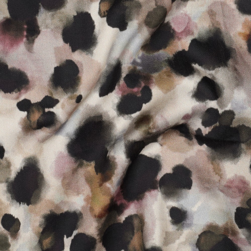 Een vleugje wildheid, elegant in aquarel gedompeld: Deze edel glanzende leo-print betovert met zijn zacht verlopende vlekken in warme beige- en bruintinten, subtiel ondersteund door zachte crème- en natuurtinten. Het aquarelachtige uiterlijk maakt de typische leo-vlekken minder hard en geeft het ontwerp een moderne, stijlvolle lichtheid.