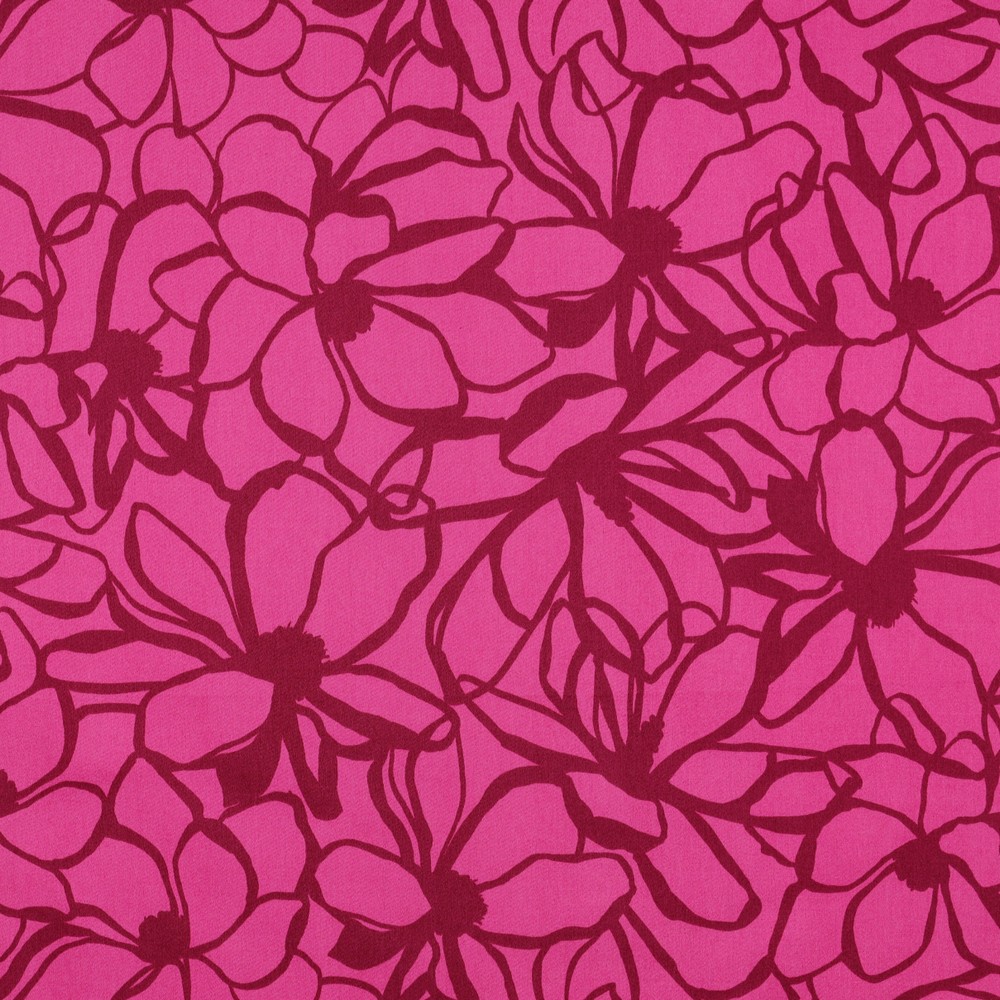 Dompel jezelf onder in de kleurrijke ontwerpwereld van Nerida Hansen. Een speels, artistiek patroon in intense roze tinten, gecombineerd met levendige accenten in rood, oranje en lichtroze, schittert op een subtiel glinsterend katoensatijn. Vloeiende, organische vormen en vloeiende lijnen geven de stof een moderne, creatieve uitstraling - als een klein kunstwerk per meter.