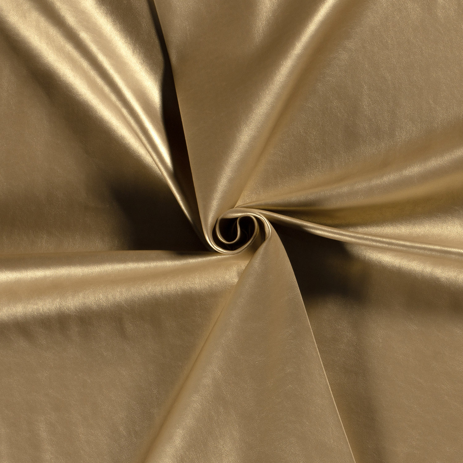 Dit kunstleer in een elegante goudtint brengt een luxueuze glans in elk naai-project. Het oppervlak glanst zachtjes afhankelijk van het licht en geeft tassen, clutches, rugzakken of toilettassen een hoogwaardige metallic look – perfect voor bijzondere accenten.