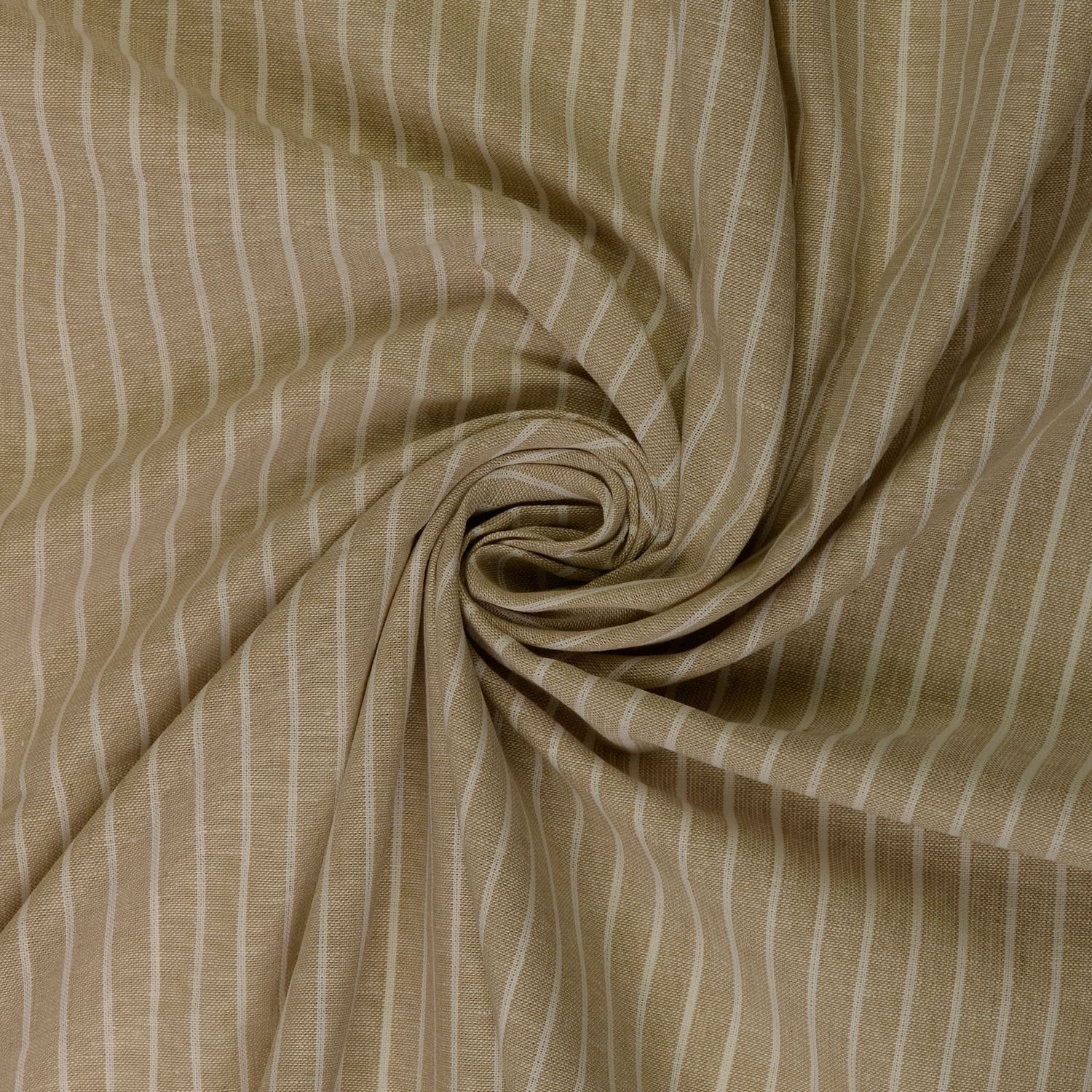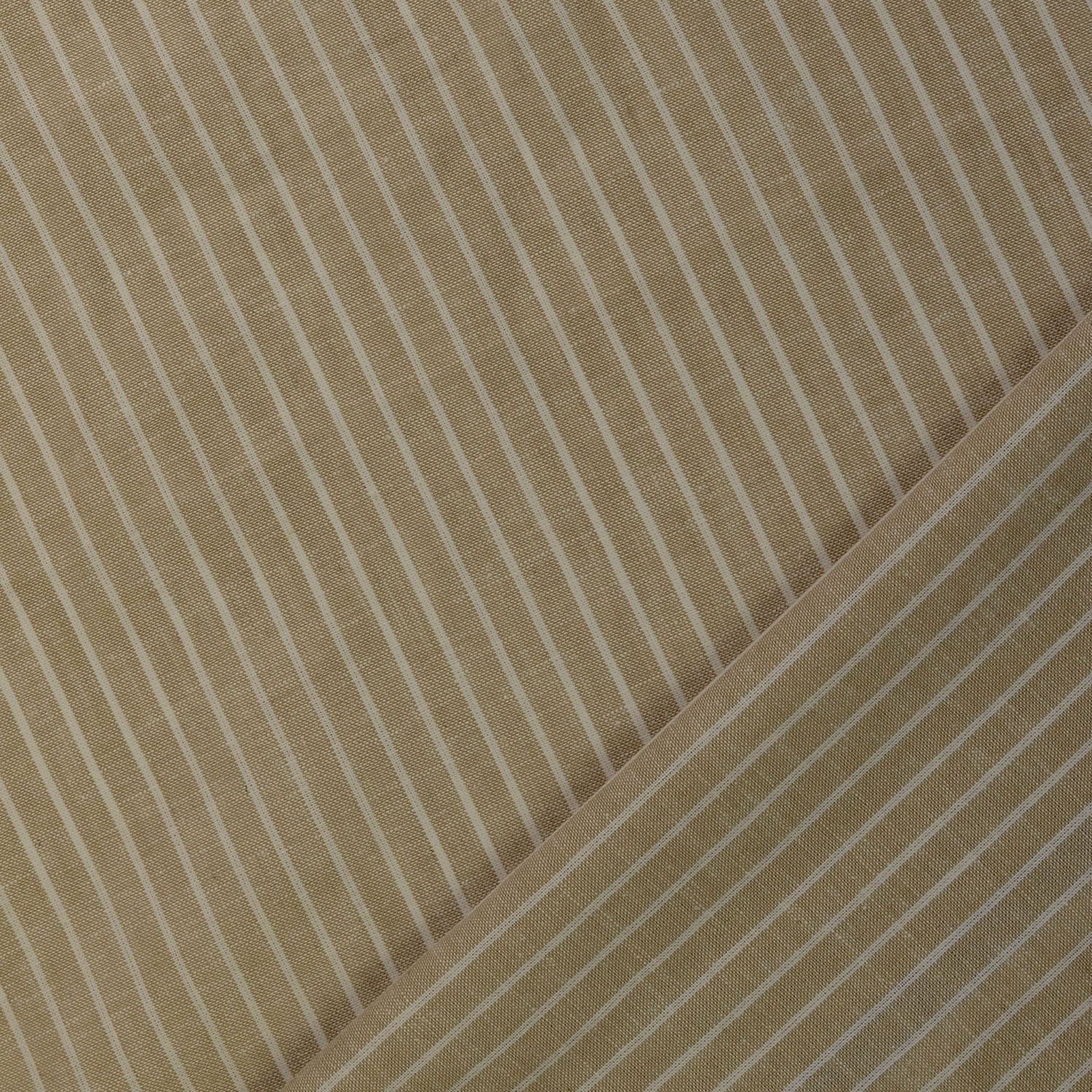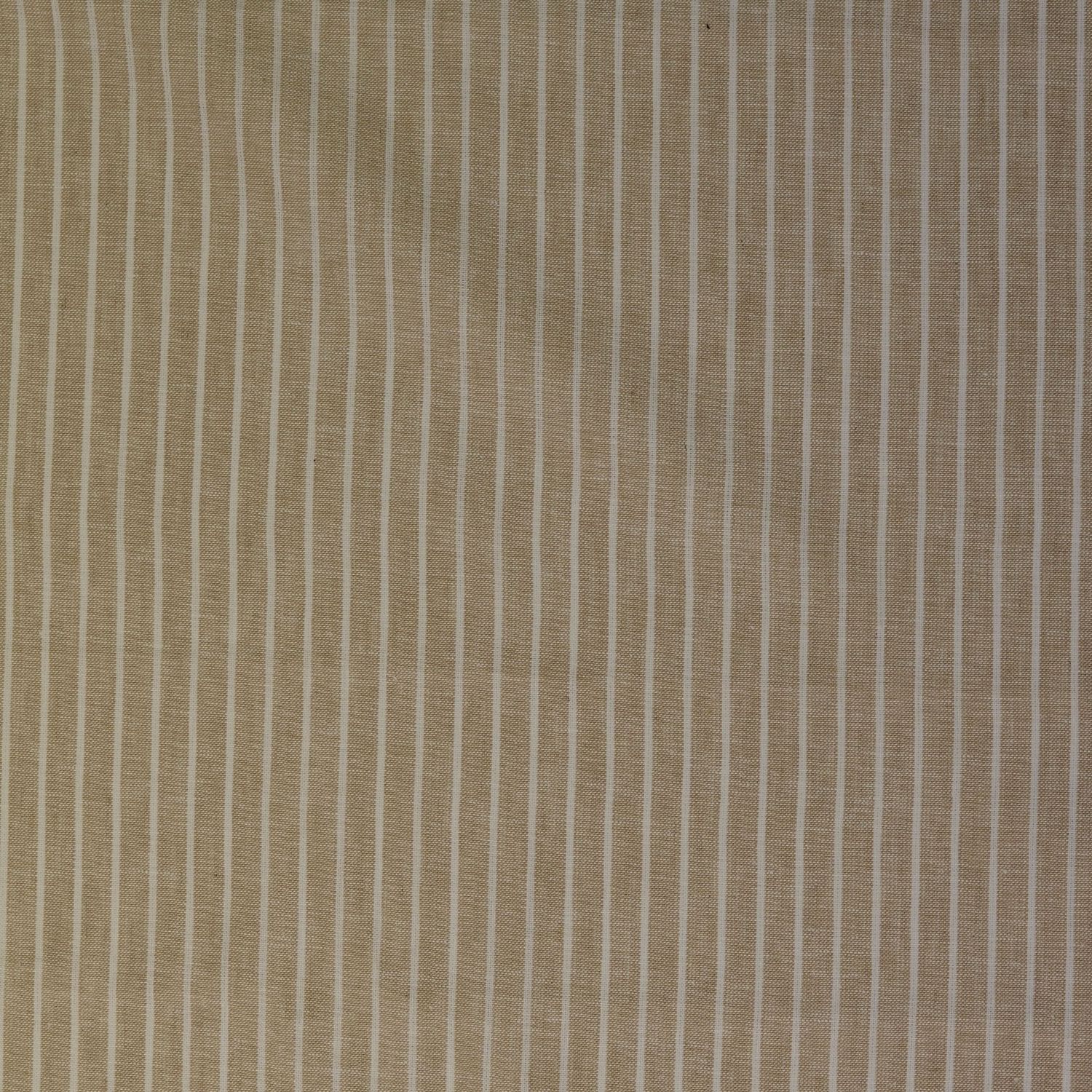 Een tijdloze klassieker met een moderne twist: Deze stof toont elegante, fijne strepen in warm beige op een lichte, natuurlijke achtergrond. De subtiele lijnen zijn discreet en stijlvol, zonder opdringerig te zijn – perfect als je van eenvoudige elegantie houdt.