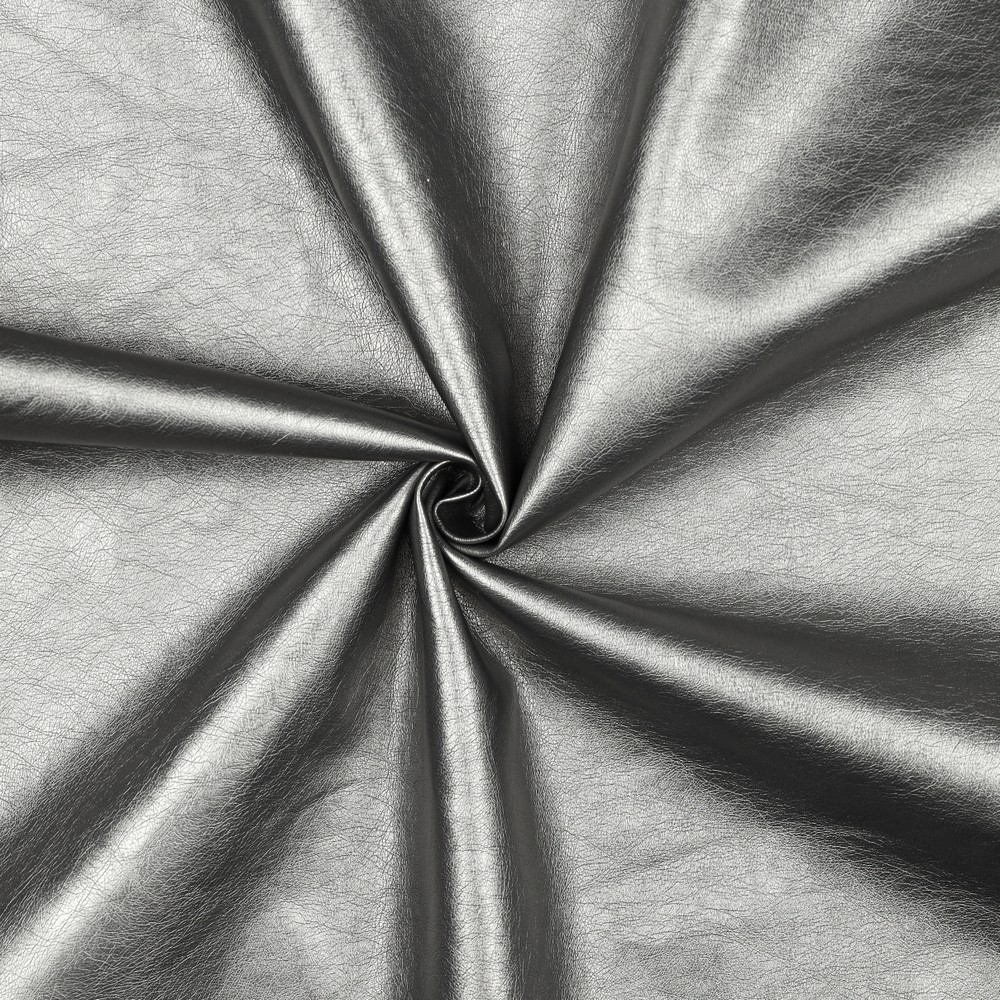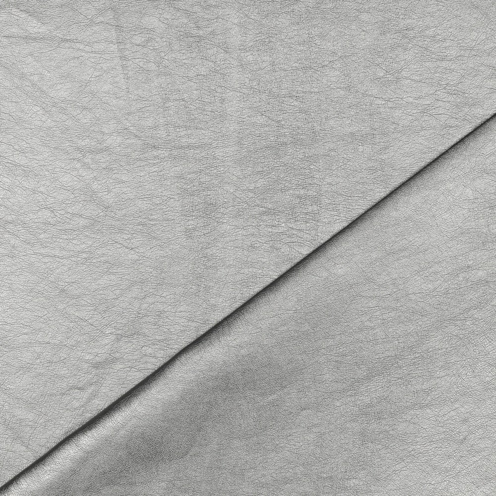 Deze elegante nabbelige leerimitatie in Silver Metallic trekt alle aandacht: het oppervlak glanst in een koel, elegant zilvergrijs dat afhankelijk van het licht subtiel schittert en doet denken aan fijn geborsteld metaal. De fijne nabbellaag geeft het kunstleer een hoogwaardige lederlook, terwijl de achterkant prettig zacht aanvoelt op de huid.