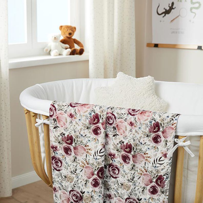 Mousseline/dubbel gehaakte stoffen Aquarel rozen Digitaal printen – wit