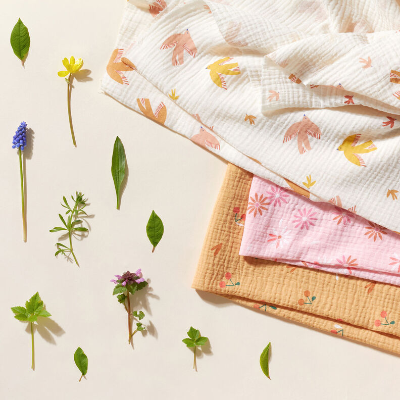 MOUSSELINE: Vroeger vooral bekend als luier- of spuugdoek is dit superzachte dubbele crincelweefsel, ook wel mousseline of dubbel gaas genoemd, vandaag populair bij groot en klein. Van mousseline kunt u niet enkel doeken, maar ook prachtige jurken, tunieken, kinderkleding en nog veel meer naaien!