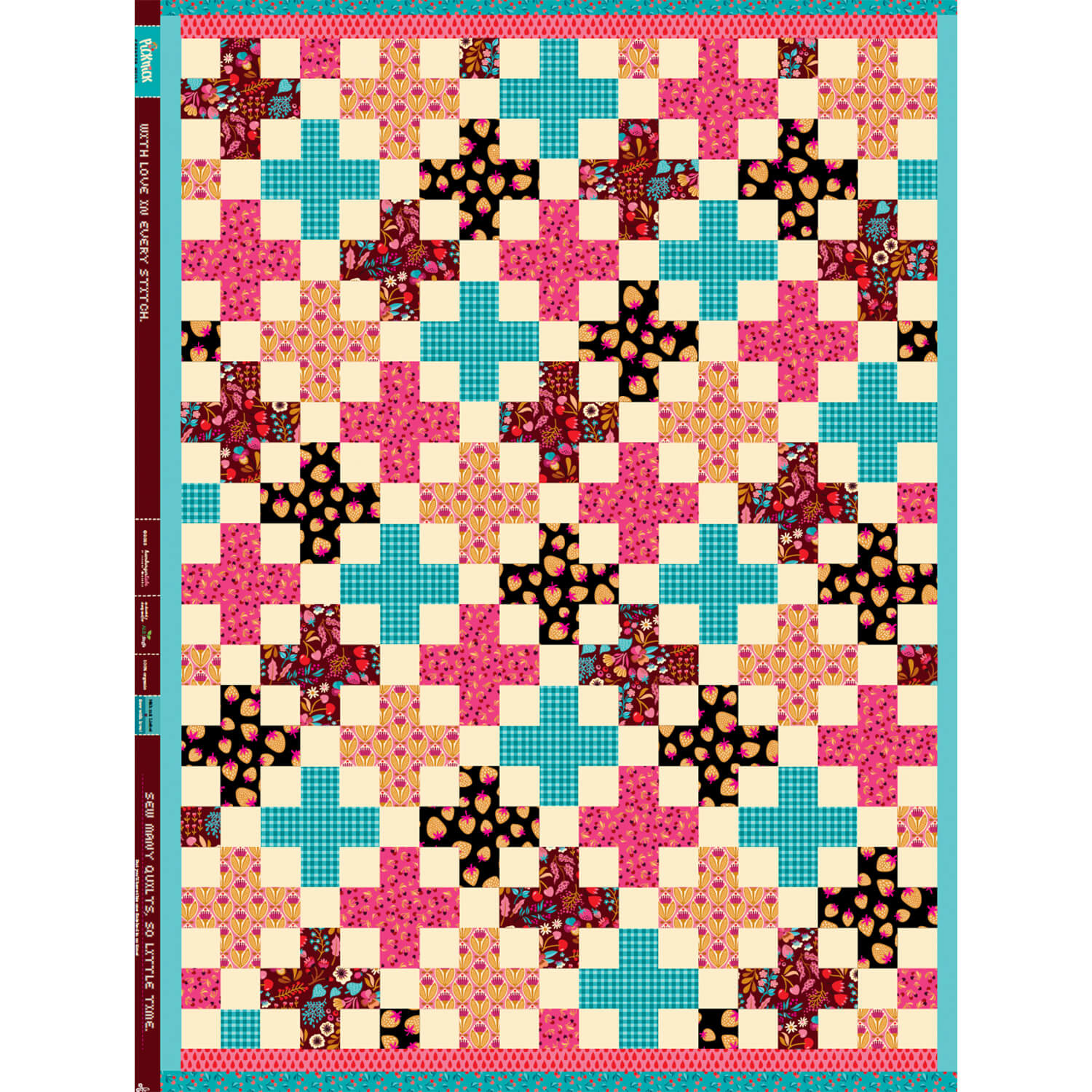 Het kleurenschema is helder en stijlvol: een elegante zwarte achtergrond wordt afgewisseld met harmonieus op elkaar afgestemde, lichtere delen en fijne details. Het resultaat is een spannende mix van grafische en textielstructuren die doen denken aan handgenaaide quilts - ideaal voor iedereen die van de quiltlook houdt, maar geen zin heeft om uren te knippen en te naaien.