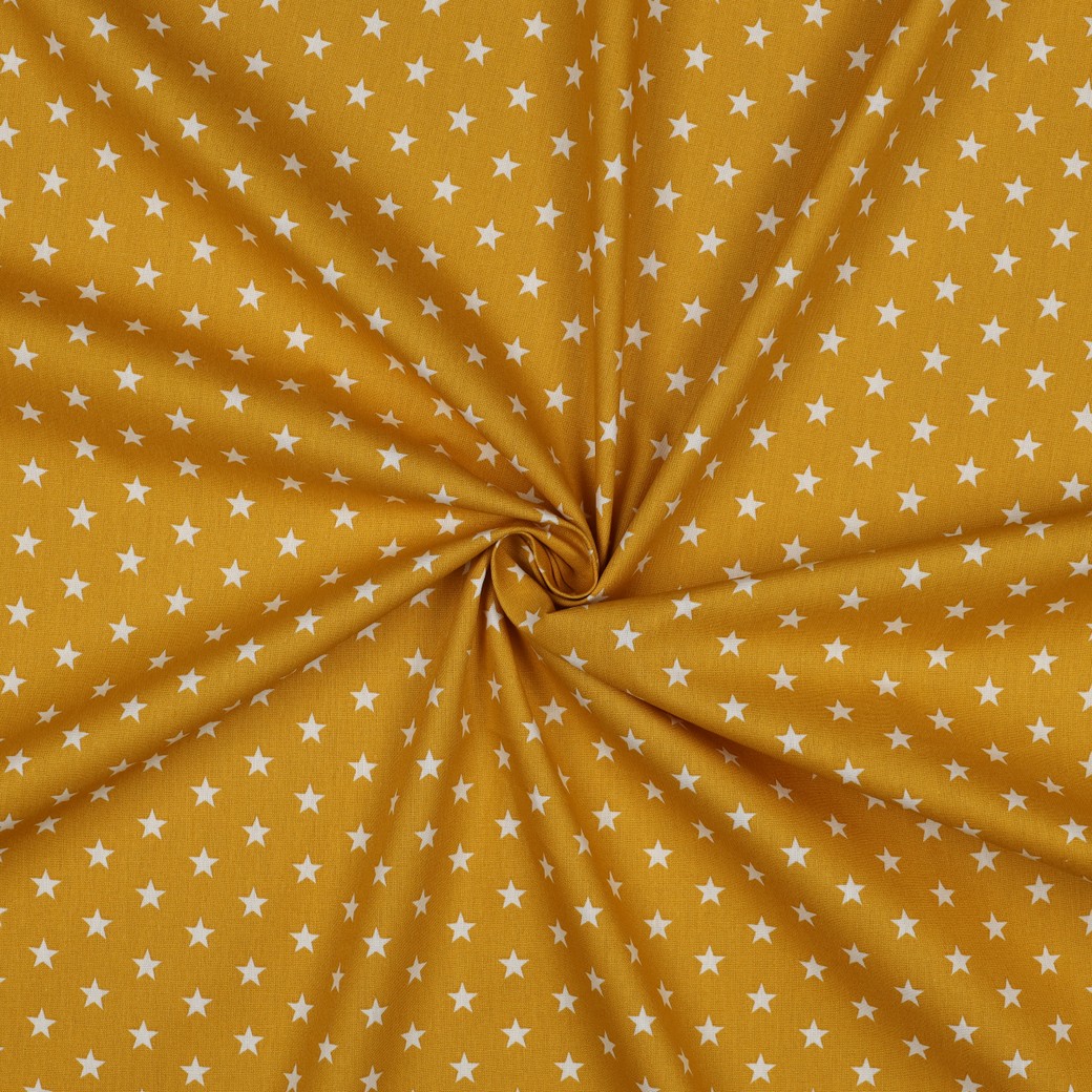 Popeline katoen - Sterren Okerwit