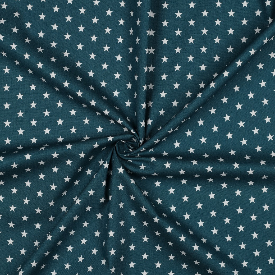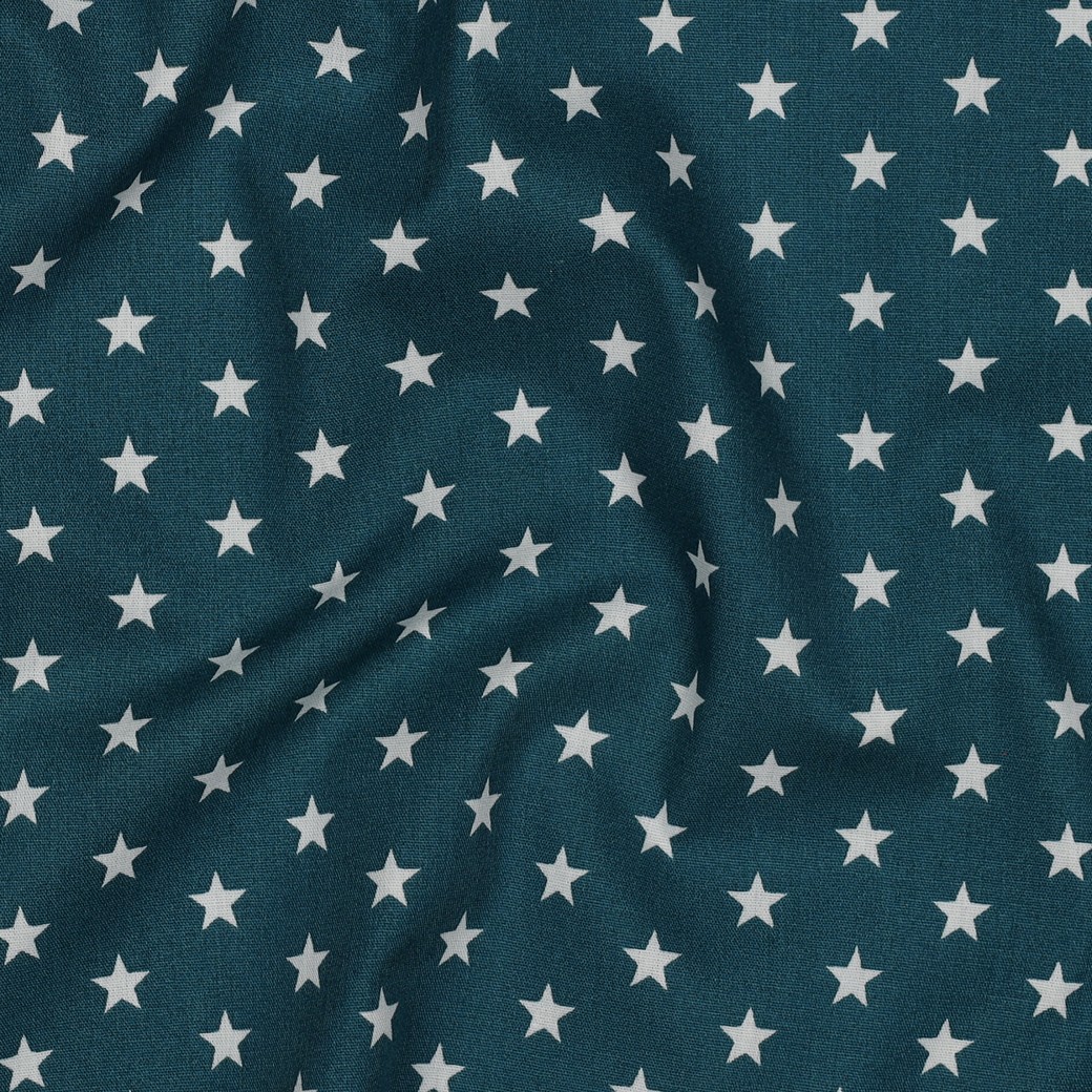 Deze katoenen popeline betovert met een tijdloze sterrenprint in vrolijke, heldere kleuren. Fel turquoise, levendig roze, zonnig geel, een warme bessenkleur en klassiek wit met donkere contrasterende sterren nodigen je uit om te combineren en te dromen.