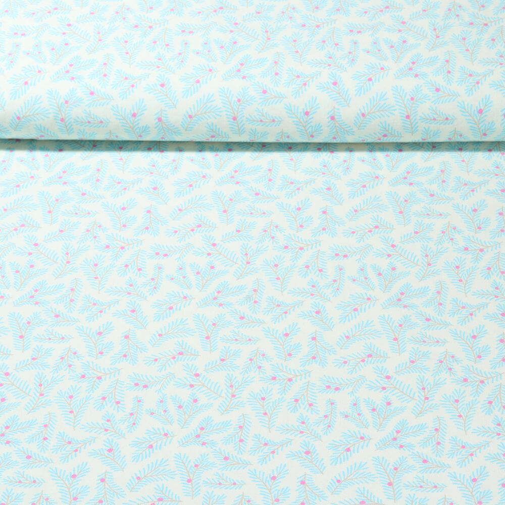 Delicate kerstmagie op elegant ecru: deze liefdevol ontworpen stof heeft een delicaat patroon van kersttakken, fijne blaadjes en kleine besjes die harmonieus over de lichtgekleurde achtergrond verstrengelen. De gedetailleerde digitale printlook geeft de motieven een bijzondere helderheid en diepte - alsof ze met een fijn penseel zijn getekend.