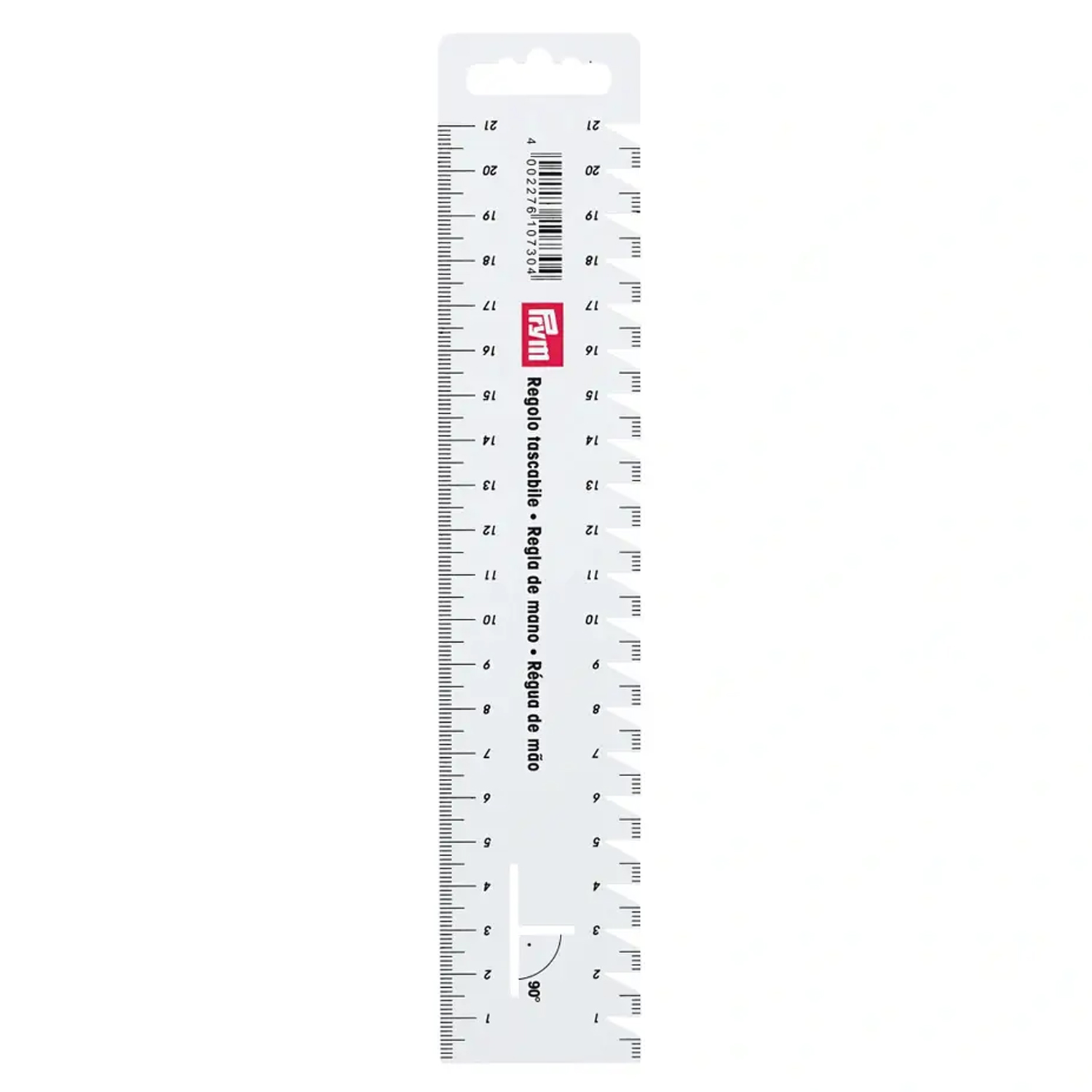 De geïntegreerde 90°-markering is bijzonder handig: hiermee kun je hoeken en haakse lijnen netjes en betrouwbaar markeren. Of je nu naait, patchworkt of knutselt - deze compacte handmeter is een must-have voor elk naaistation.