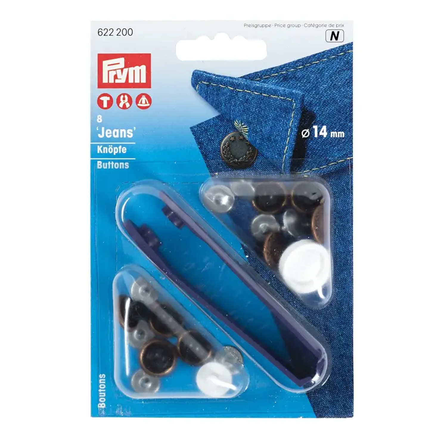De knopen kunnen zonder naaien worden bevestigd en zijn daarom ideaal voor reparaties, aanpassingen of creatieve upcyclingprojecten. Je kunt ze bevestigen met het bijgeleverde gereedschap en een hamer, de VARIO tang of het statief - schoon, veilig en duurzaam.