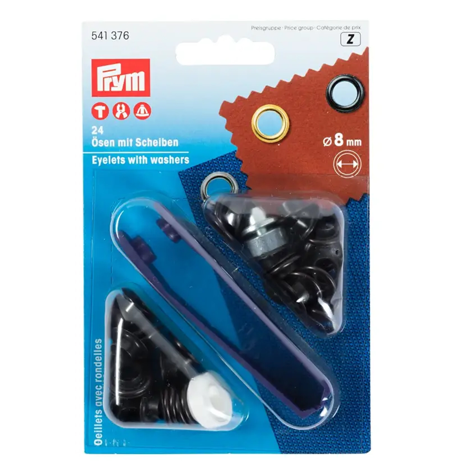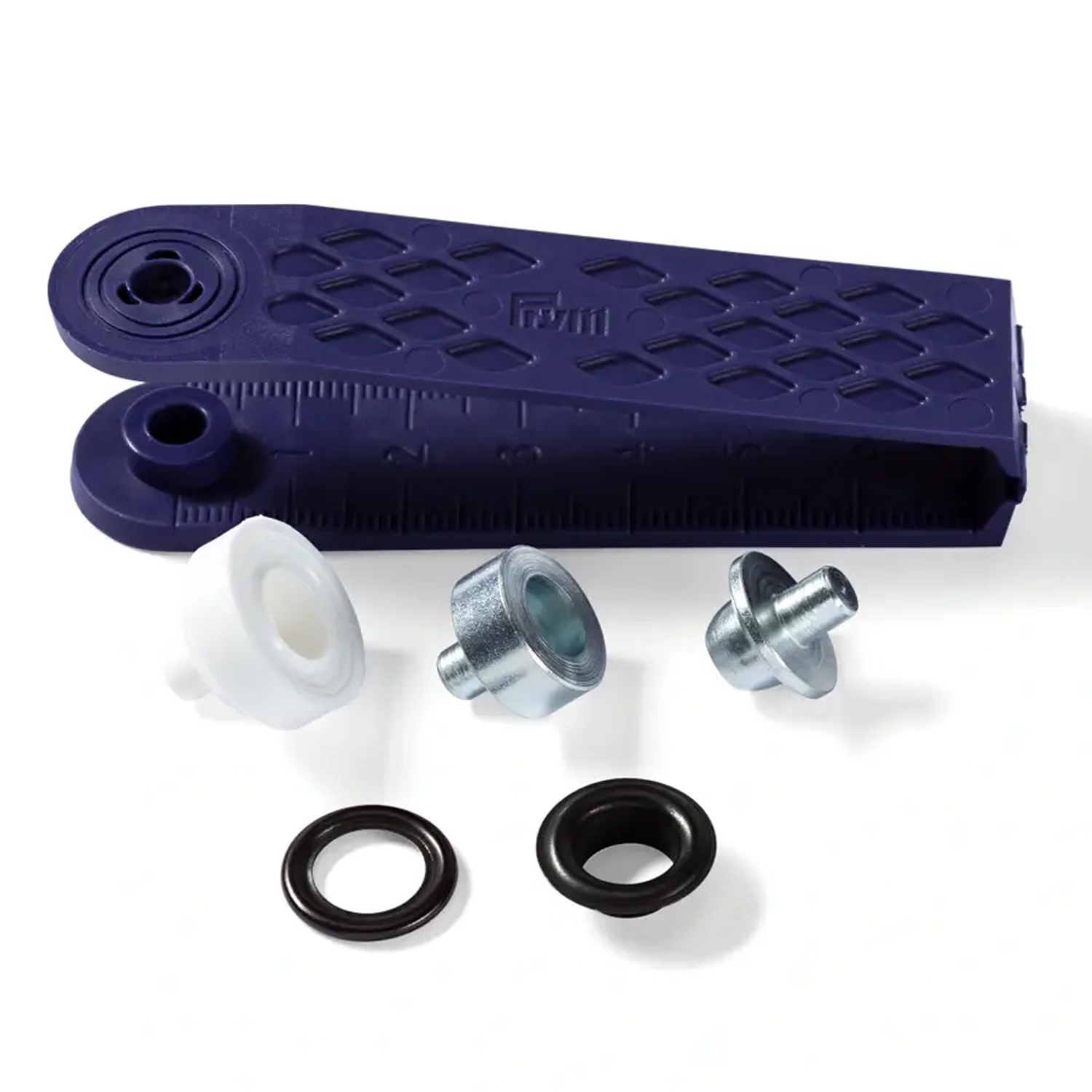 Prym oogjes 8mm Ø + gereedschap (opzetstukjes) - gepolijst