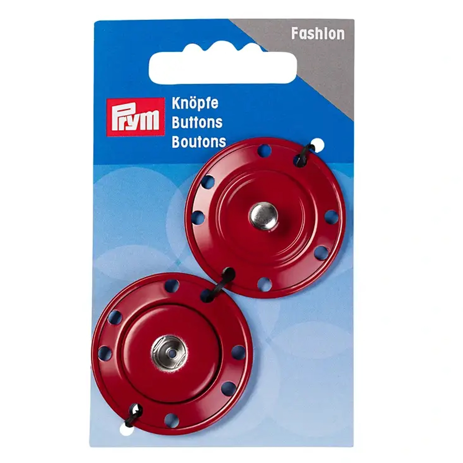 Deze grote Prym opnaaibare drukknoop in elegant donkerrood voegt een stijlvol accent toe aan kleding en accessoires. Het glanzende, dieprode oppervlak oogt modern en klassiek tegelijk - perfect om jassen, mantels, vesten of blazers een speciale look te geven.