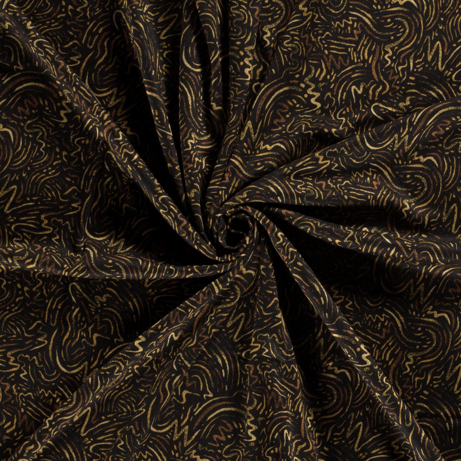 Een moderne blikvanger met een grafische twist: deze Romanit-jersey overtuigt met een spannende mix van lijnen in zwart en warm oker. Duidelijke, verschillend dikke lijnen lopen in dynamische patronen over de stof en creëren een stijlvolle, urban look – soms dicht naast elkaar, soms met kleine tussenruimtes die het ontwerp lichtheid geven.