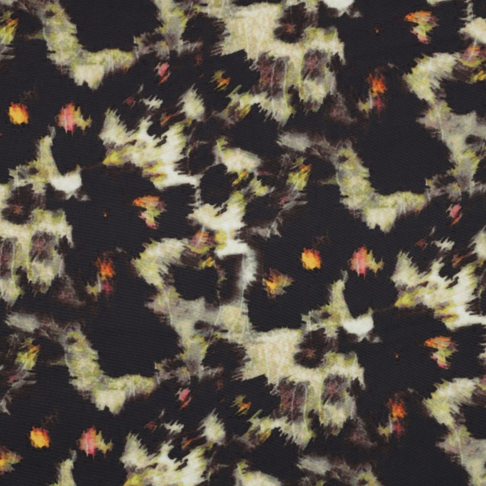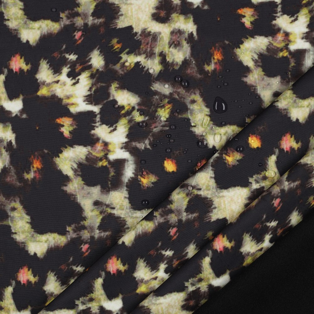 Een stof gemaakt voor sterke optredens: deze softshell met abstract luipaarddesign combineert stedelijke coolness met een vleugje wildheid. De klassieke luipaardlook wordt hier modern geïnterpreteerd – met kunstzinnig gevormde vlekken en vormen in verschillende grijs- en zwarttinten die over de stof lopen.