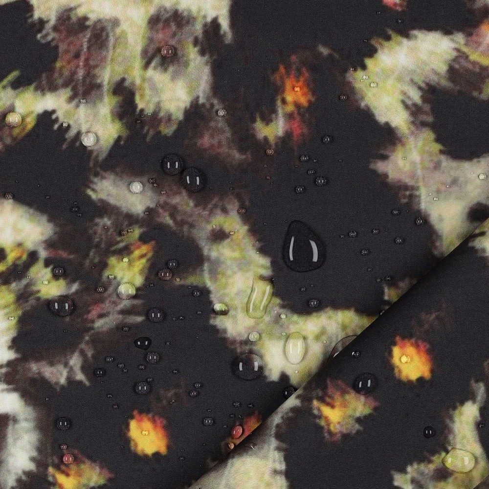 De donkere, elegante kleuren maken de stof ongelooflijk veelzijdig: perfect voor jassen, vesten, mantels, outdoor kleding, kinderkleding of coole accessoires zoals rugzakken, regenbroeken en overtrek-hoodies. Het patroon is opvallend, maar niet opdringerig – ideaal als je een statement wilt maken zonder te bont te worden.