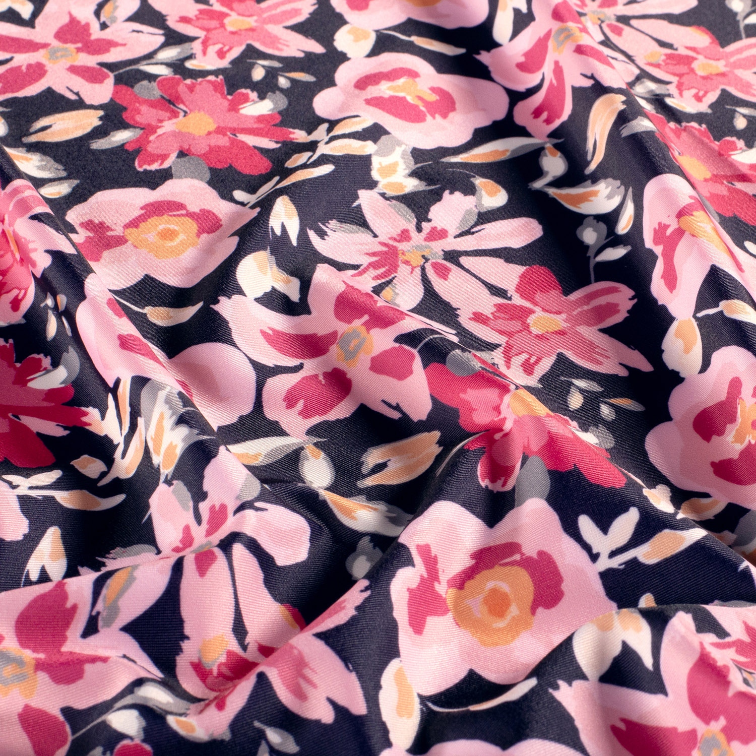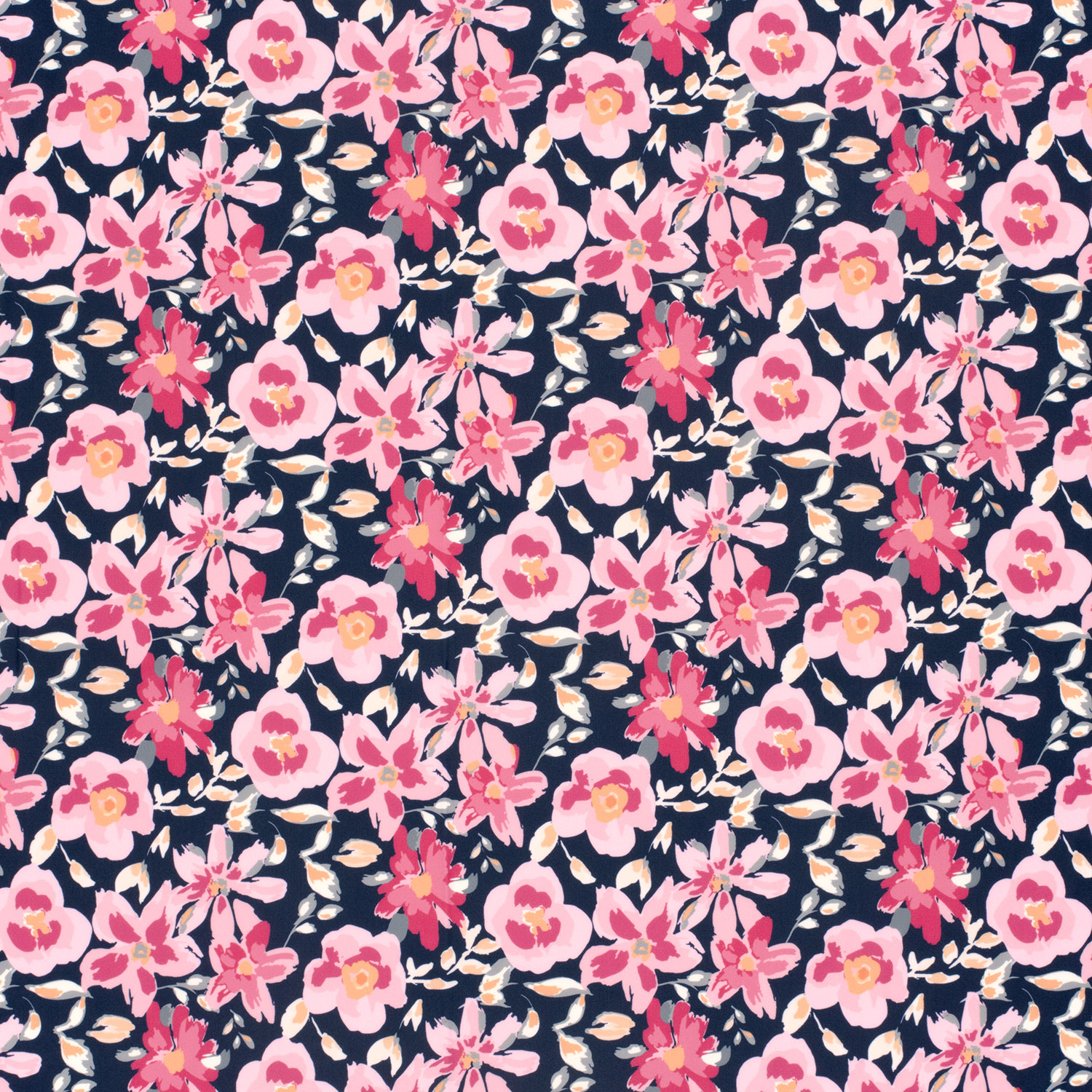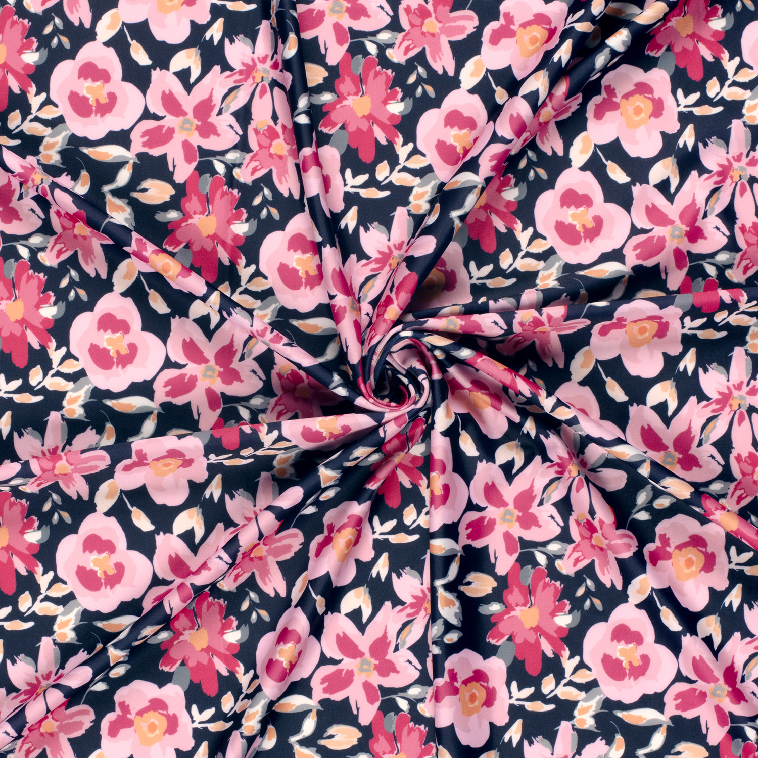 Sport- & badstof – Digitale print Bloemen Nachtblauw UPF50 Gerecycled