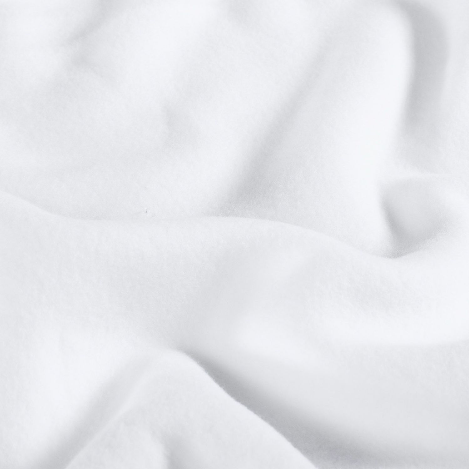 Knus, zacht en stralend wit – deze katoenfleece in klassiek wit is een echte allrounder voor al je comfortabele projecten. Het oppervlak voelt pluizig en zacht aan, als een lichte wolk waarin je het liefst meteen zou willen duiken.