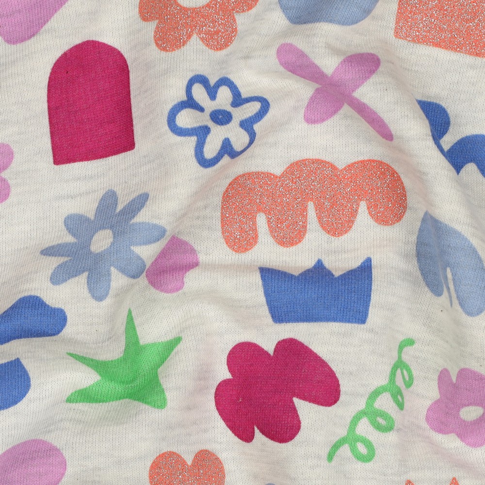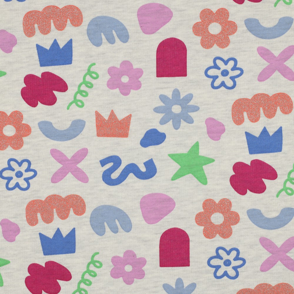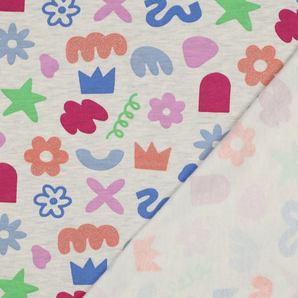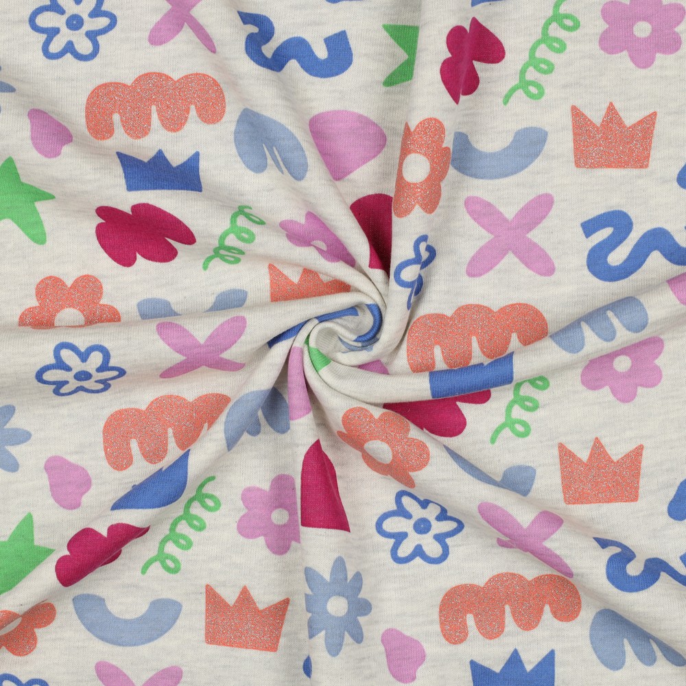 Sweatstof - Bloemen vormen met glitter Ecru Melange