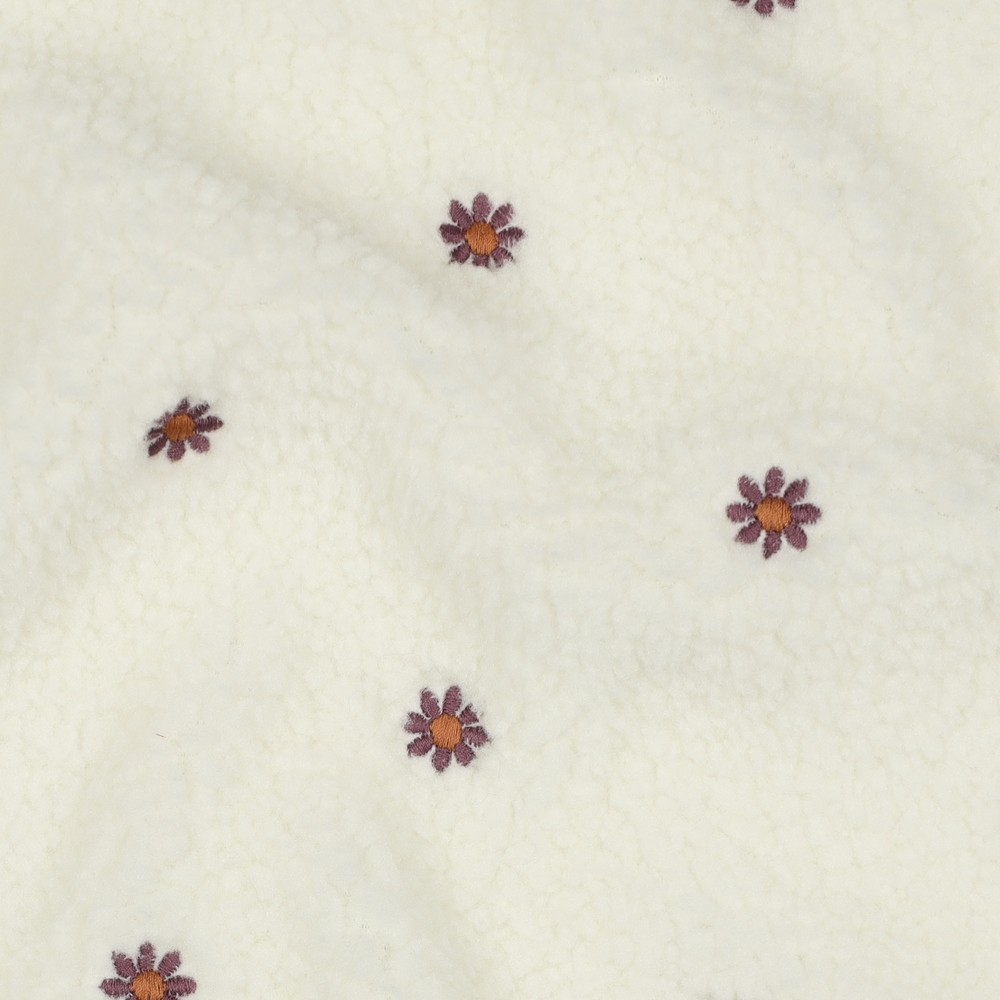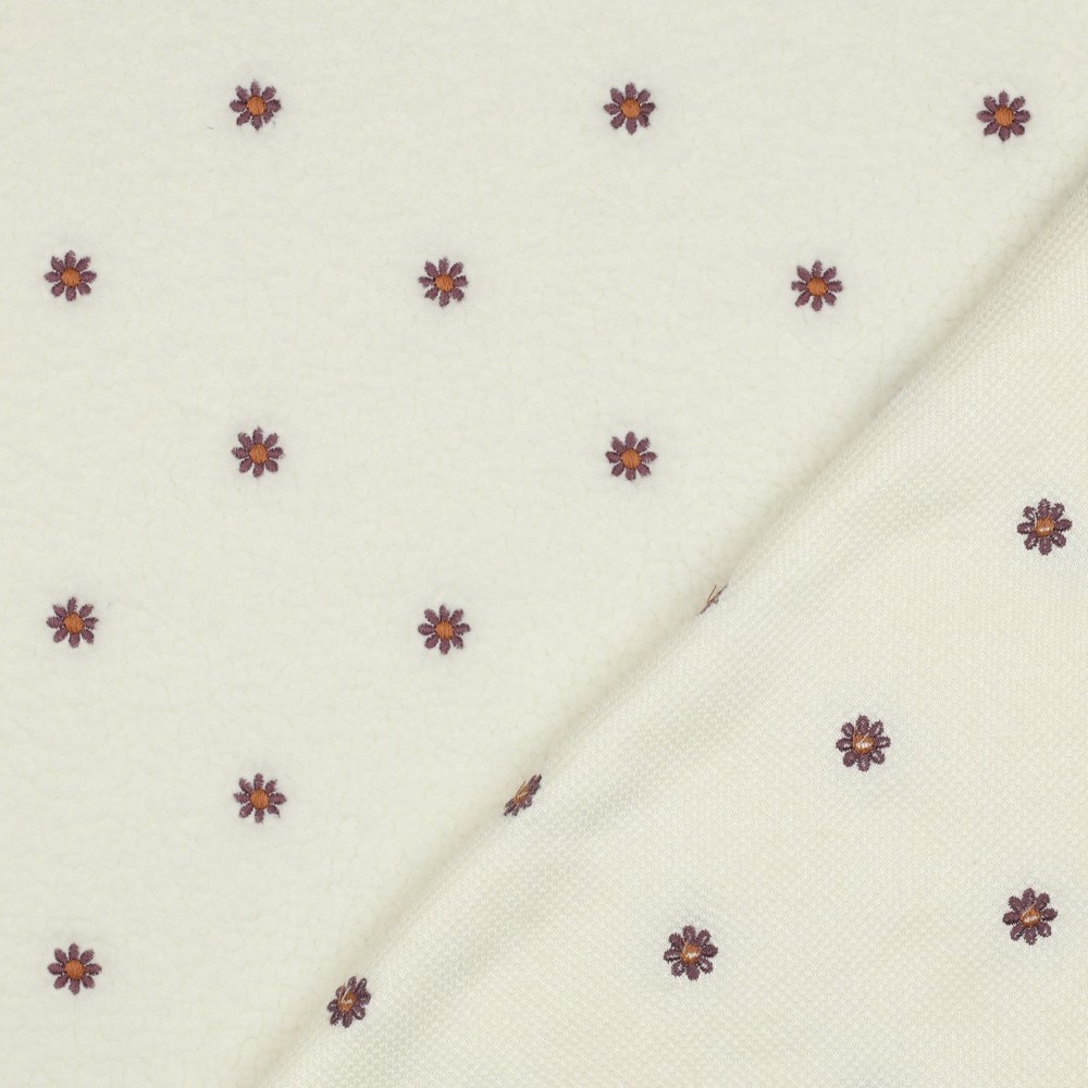Teddy fleece - geborduurde bloemen ecru
