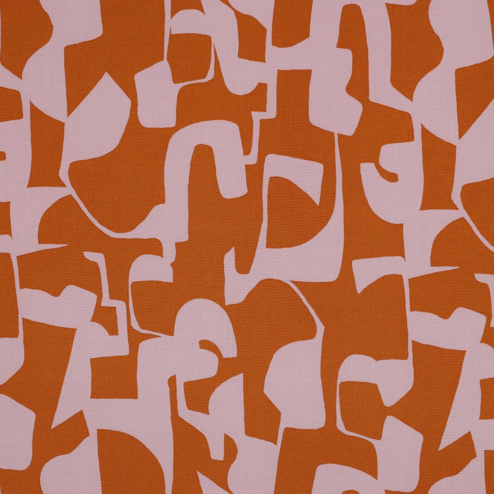 Een stof als een zonsondergang op de huid: stralend oranje ontmoet warme rood- en geeltinten, doorspekt met zachte beige- en crèmekleuren. Het abstracte patroon doet denken aan vloeiende penseelstreken en zachte kleurverlopen – levendig, artistiek en toch harmonieus.