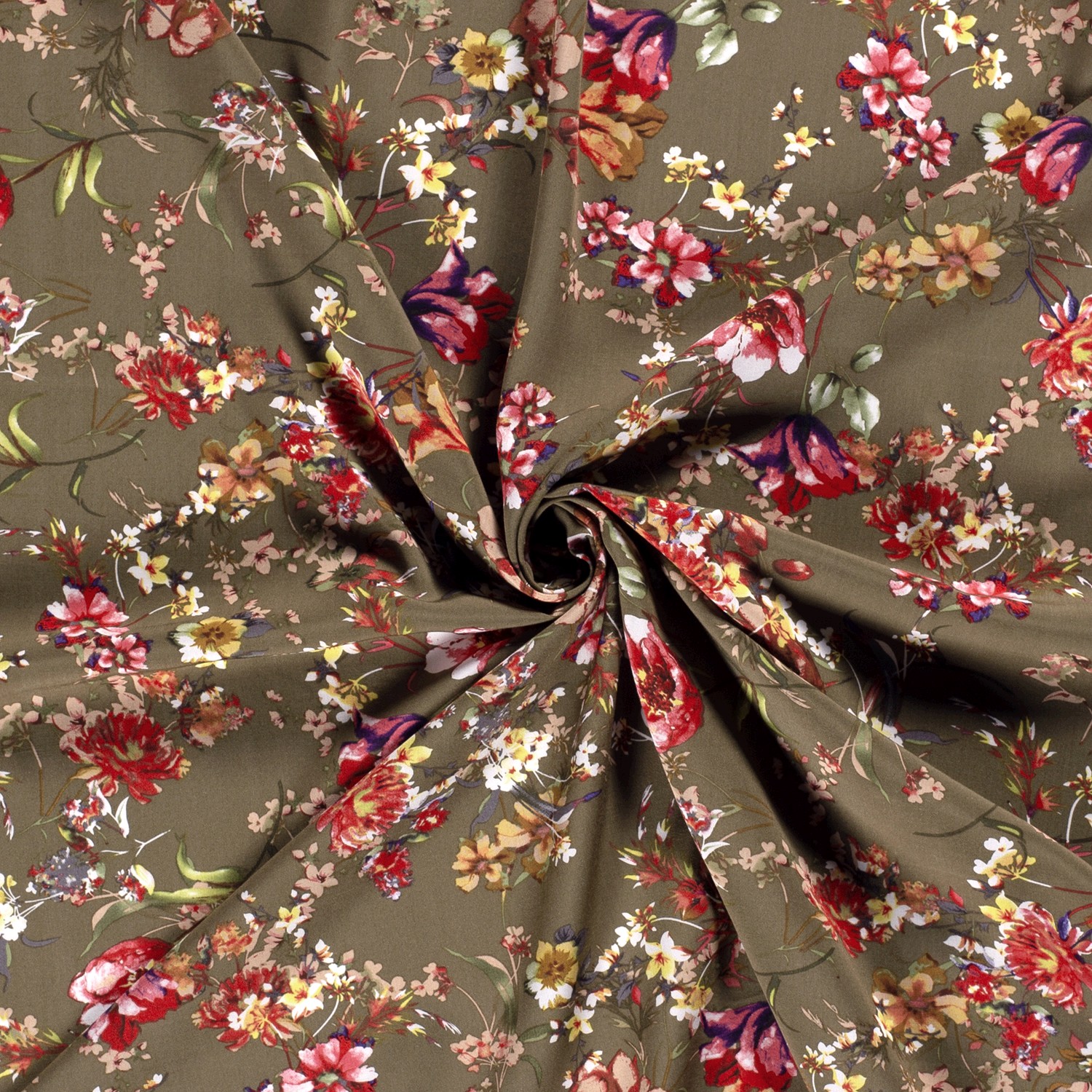 Of het nu voor dagelijks gebruik, een stadswandeling of vakantie is – met “Viscose popeline - bloemenmix groen” haal je een vrouwelijke, natuurlijke look in je naai-projecten die het hele jaar door werkt.