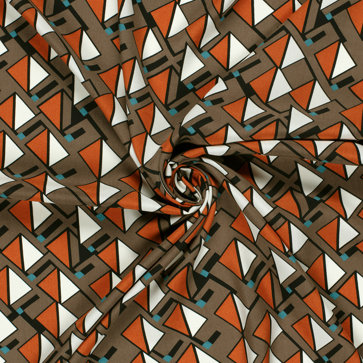 Een stof gemaakt voor tijdloze favoriete stukken: op een ingetogen taupe tint dansen kleine, grafische witte driehoeken over het oppervlak en geven het ontwerp een moderne maar toch zachte uitstraling. Het subtiele patroon is elegant en rustig, zonder ooit saai te zijn – perfect als je van patronen houdt maar niet van te veel kleur.