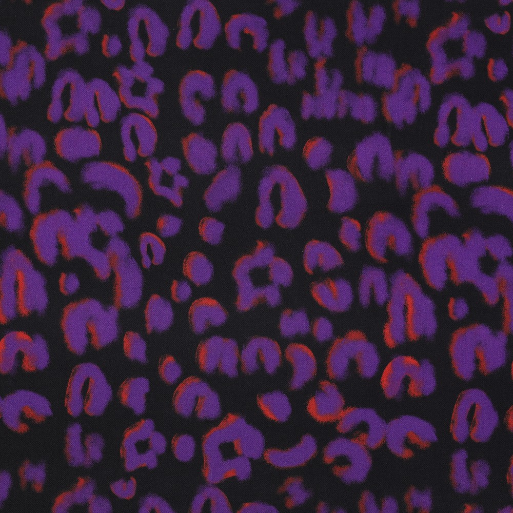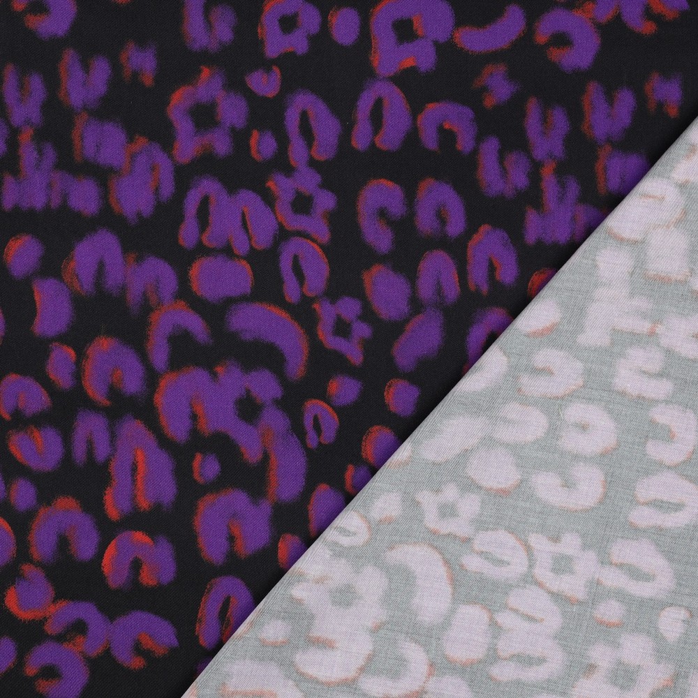 Viscose satijn - Digitale print Leo zwart paars