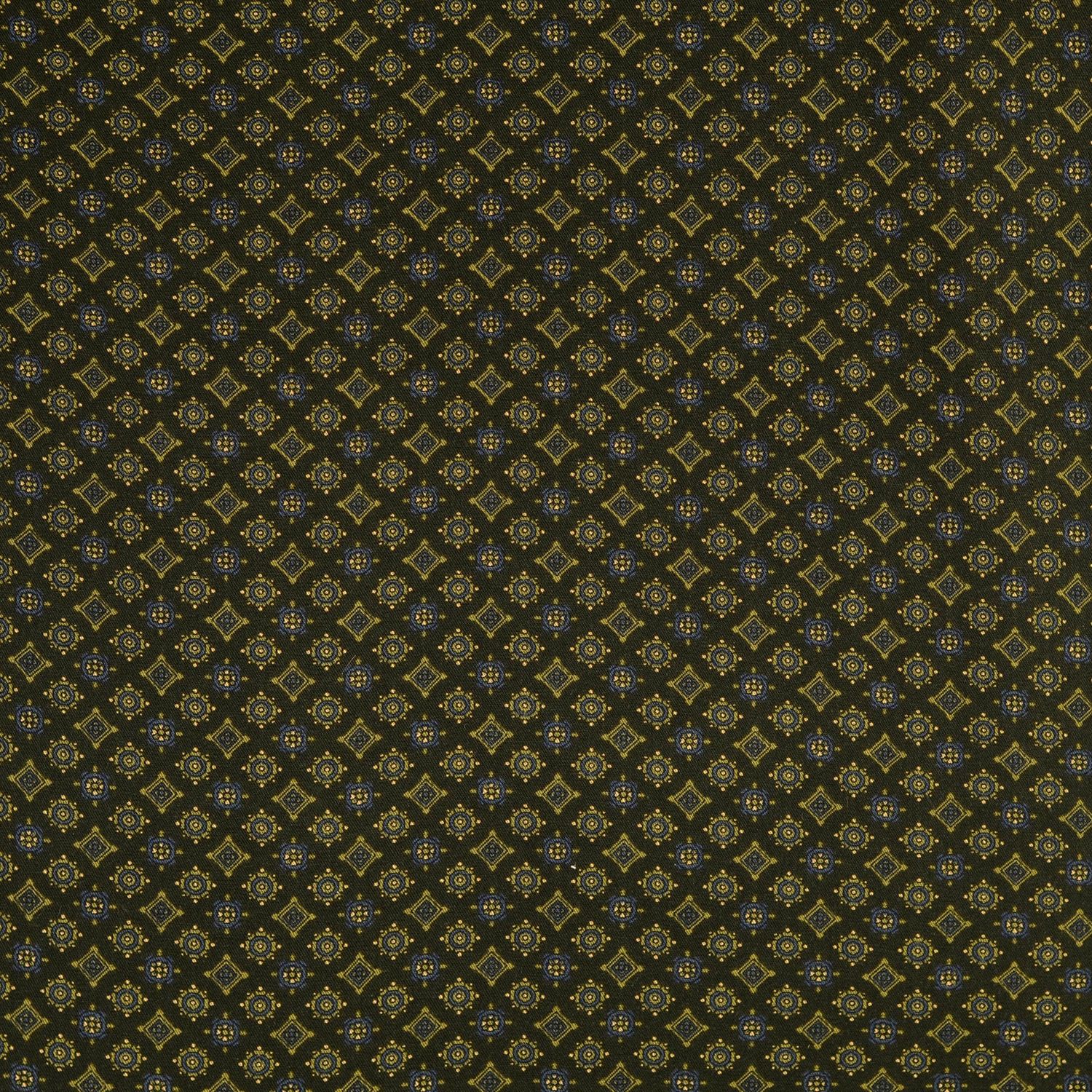 Een stof als een wandeling door een klein, stijlvol jungleparadijs: Op de zacht glanzende kaki ondergrond spelen fijne, met de hand getekende bladeren, tere bloemen en kleine grafische elementen in een geraffineerde motievenmix. De subtiele natuurtinten in crème, zwart en warme bruintinten geven het ontwerp een elegante, rustige uitstraling, terwijl de vele kleine details de stof levendig en modern maken.