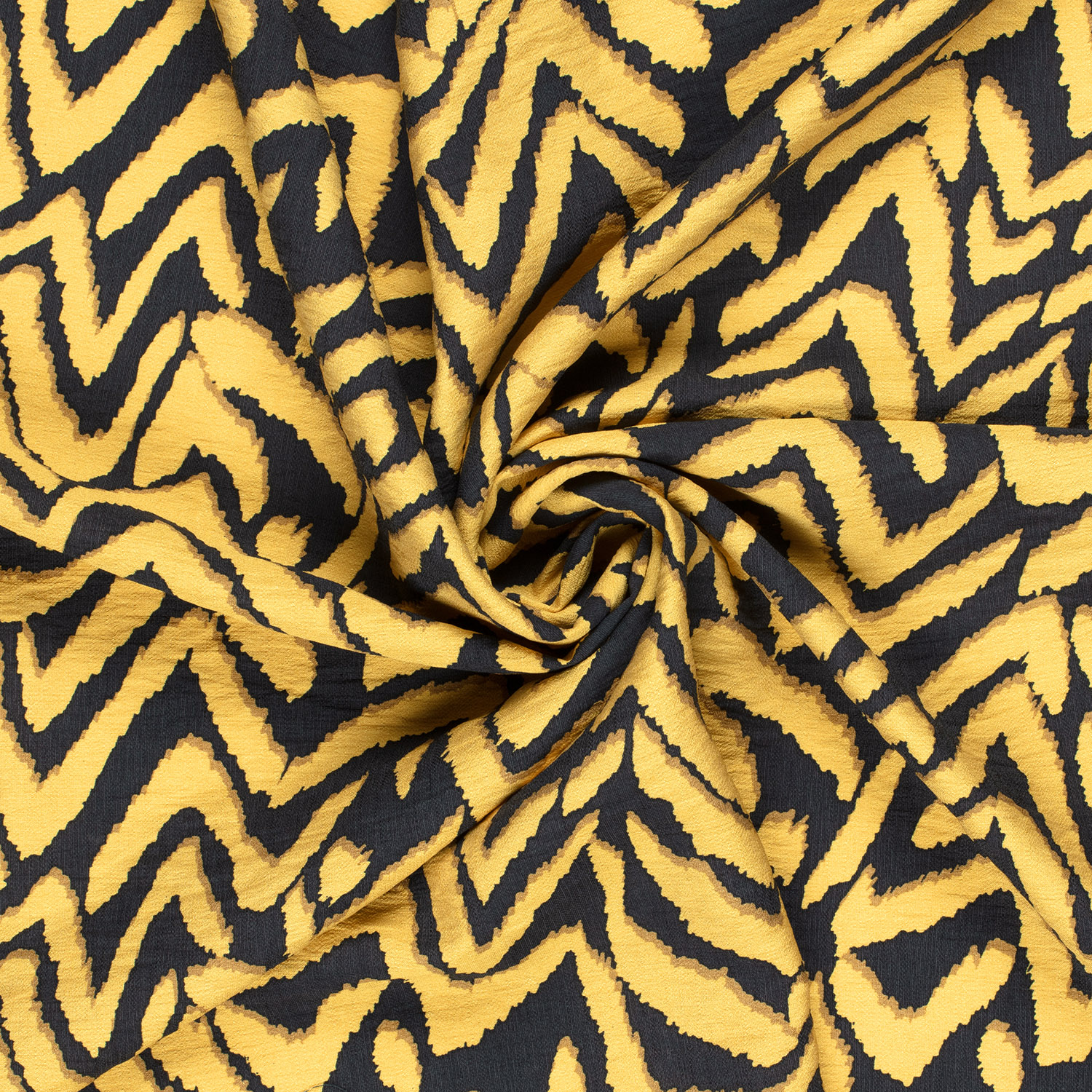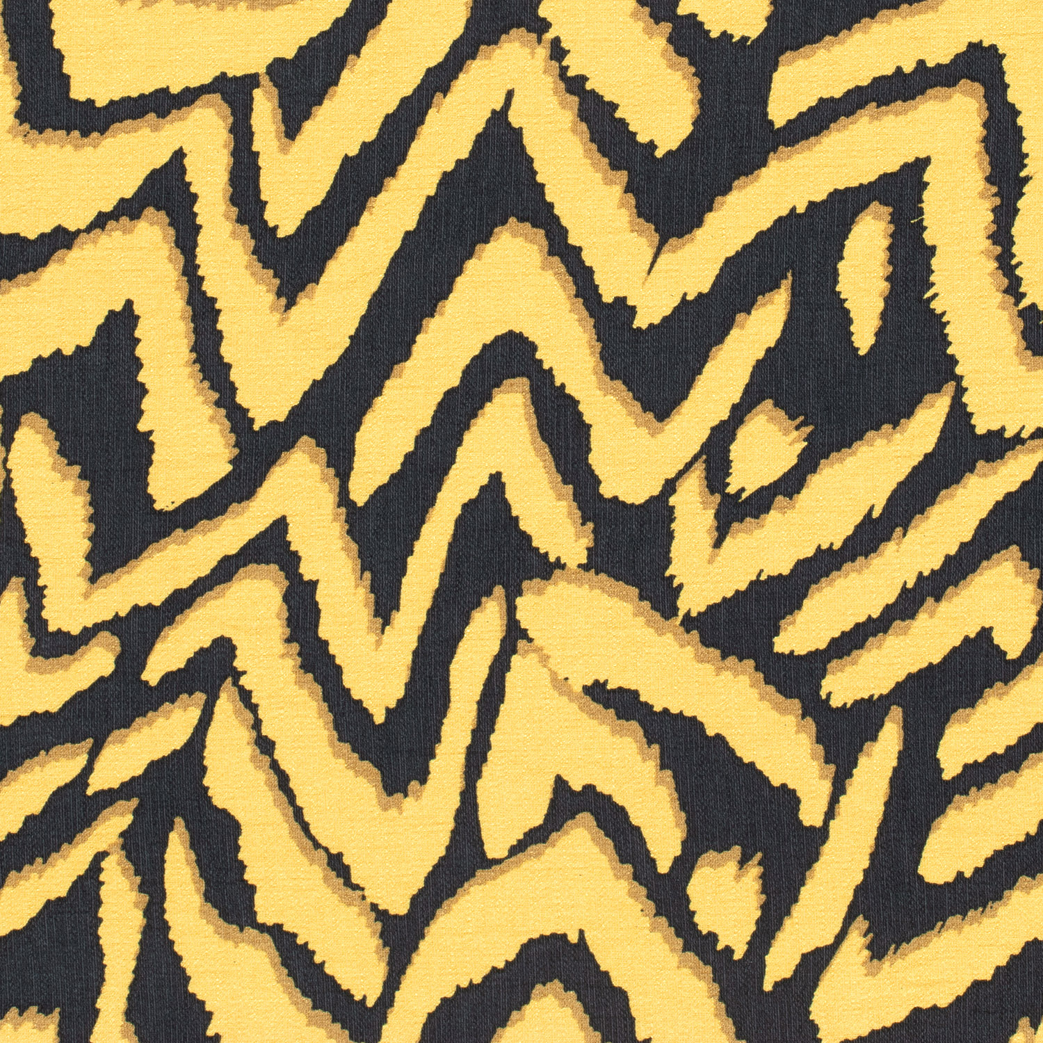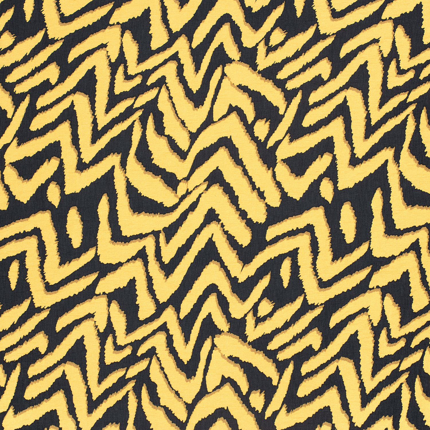Een stof als een statement: het opvallende zigzagpatroon in krachtig geel en diep zwart trekt alle blikken. De heldere, grafische lijnen geven het ontwerp een moderne, bijna stedelijke uitstraling – perfect als je wilt opvallen zonder te overdrijven.