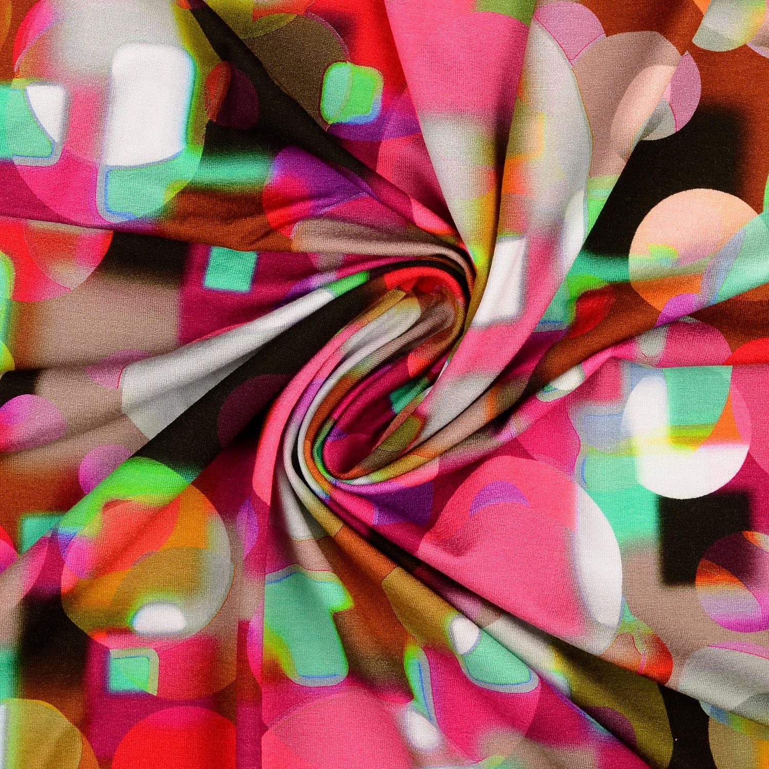 De mix van grafische vormen en vrouwelijke illustraties geeft het ontwerp een trendy, licht speelse toets – perfect voor iedereen die van modieuze unieke stukken houdt. Of het nu gaat om vloeiende shirts, luchtige jurken, rokken of comfortabele loungewear: deze stof maakt van elk naai-project een bijzonder hoogtepunt dat indruk maakt zowel in het dagelijks leven als bij speciale gelegenheden.