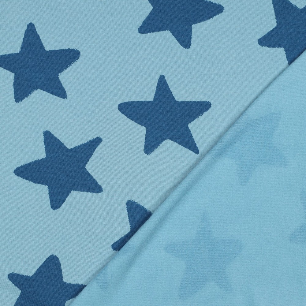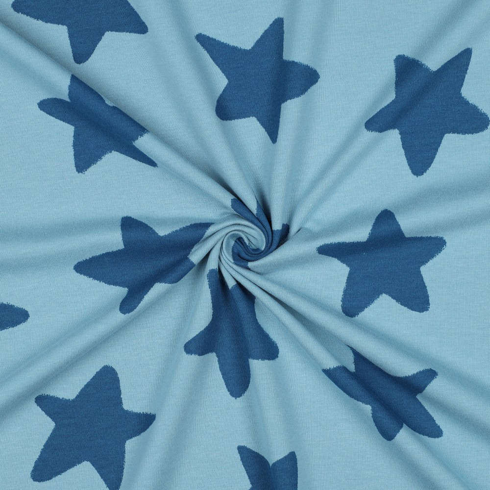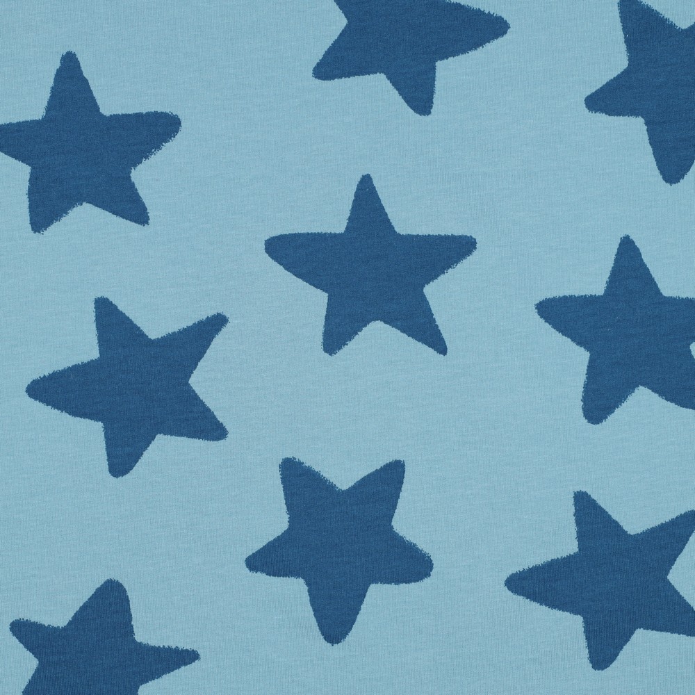Een stof als een heldere nacht vol fonkelende sterren: onze zachte sweat "Stars Blue" betovert met een diepblauwe kleur waarop kleine, gelijkmatig verdeelde sterren zijn gestrooid. De lichtgekleurde sterren steken prachtig af tegen de donkere achtergrond en creëren een vrolijke, speelse look die toch aangenaam rustig en harmonieus is.