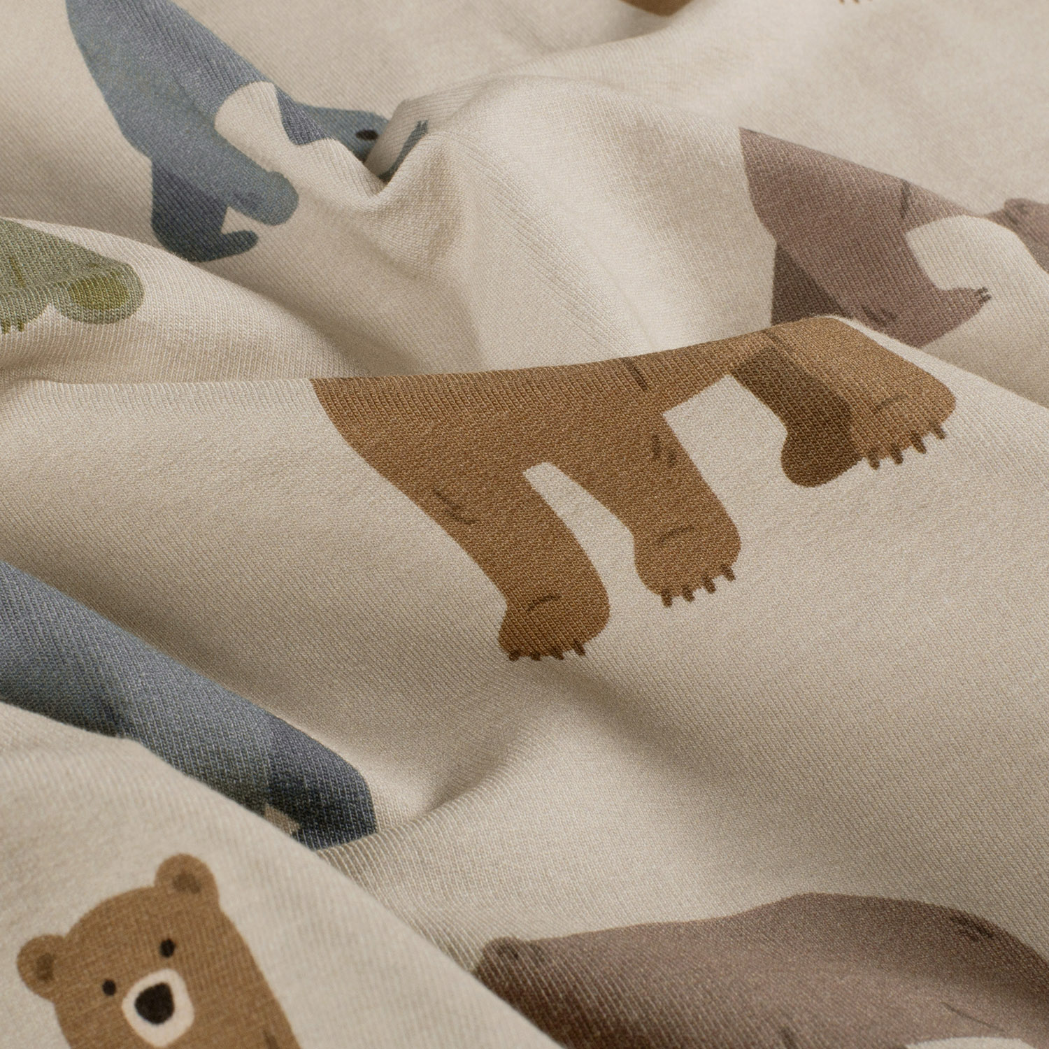 Een zachte zandkleur als achtergrond, met liefdevol getekende beren in warme bruine tinten – deze zomer sweatstof is als een kleine omhelzing in stofvorm. De schattige beren met hun fijne contouren en eenvoudige details zien er modern en tegelijk heerlijk speels uit.