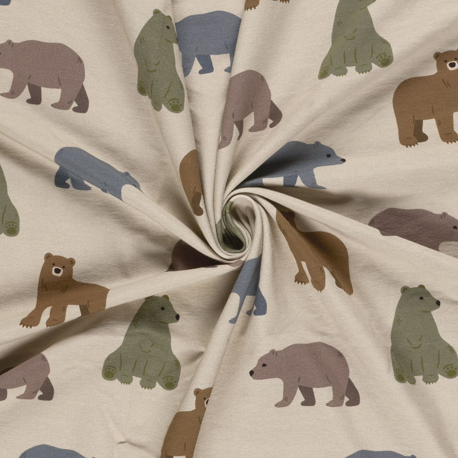 De zachte natuurlijke kleuren maken de stof prachtig te combineren – of het nu met crème, beige, bruin of gedempte pasteltinten is. Ideaal voor gezellige hoodies, sweatjurken, broeken, truien, knuffeldekens of baby- en kinderkleding die niet te kleurrijk, maar toch vrolijk en kindvriendelijk moet zijn.