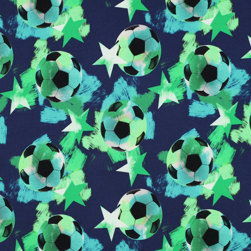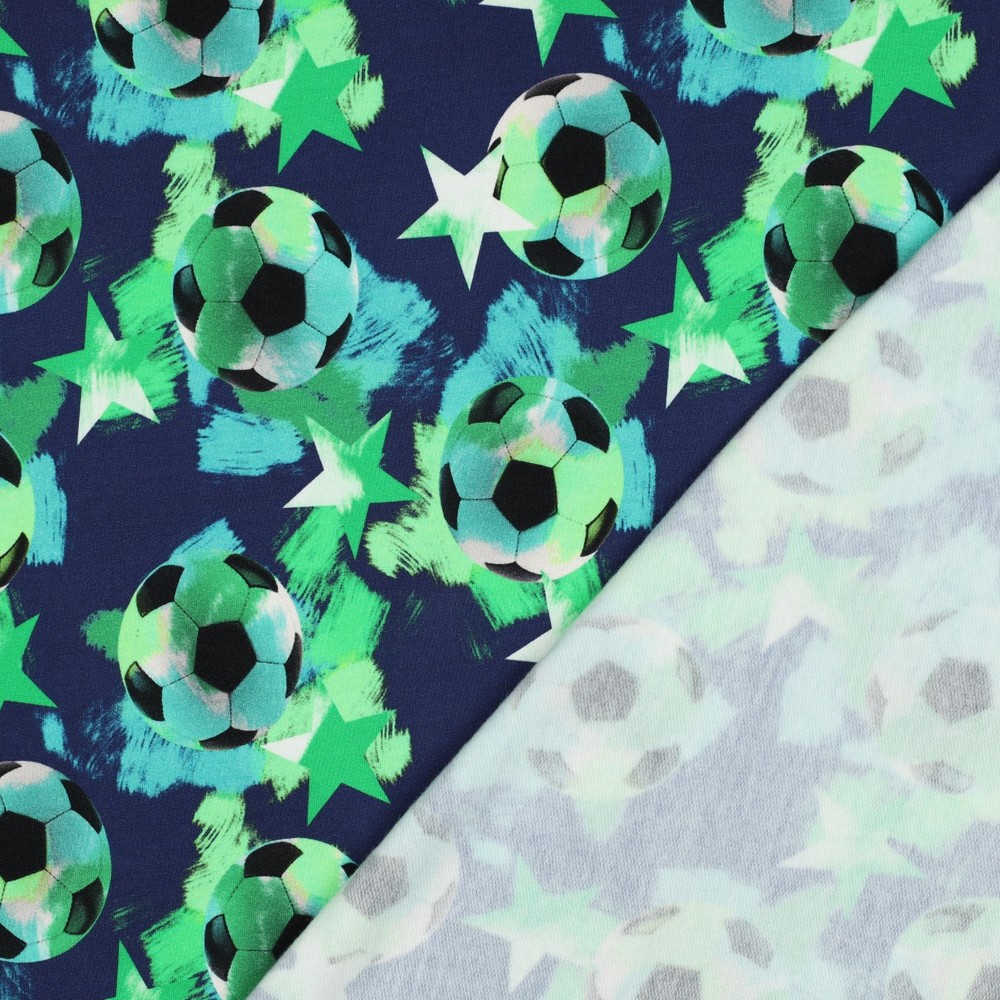 Zomerfleece - French Terry digitale print voetbal Navy geborsteld