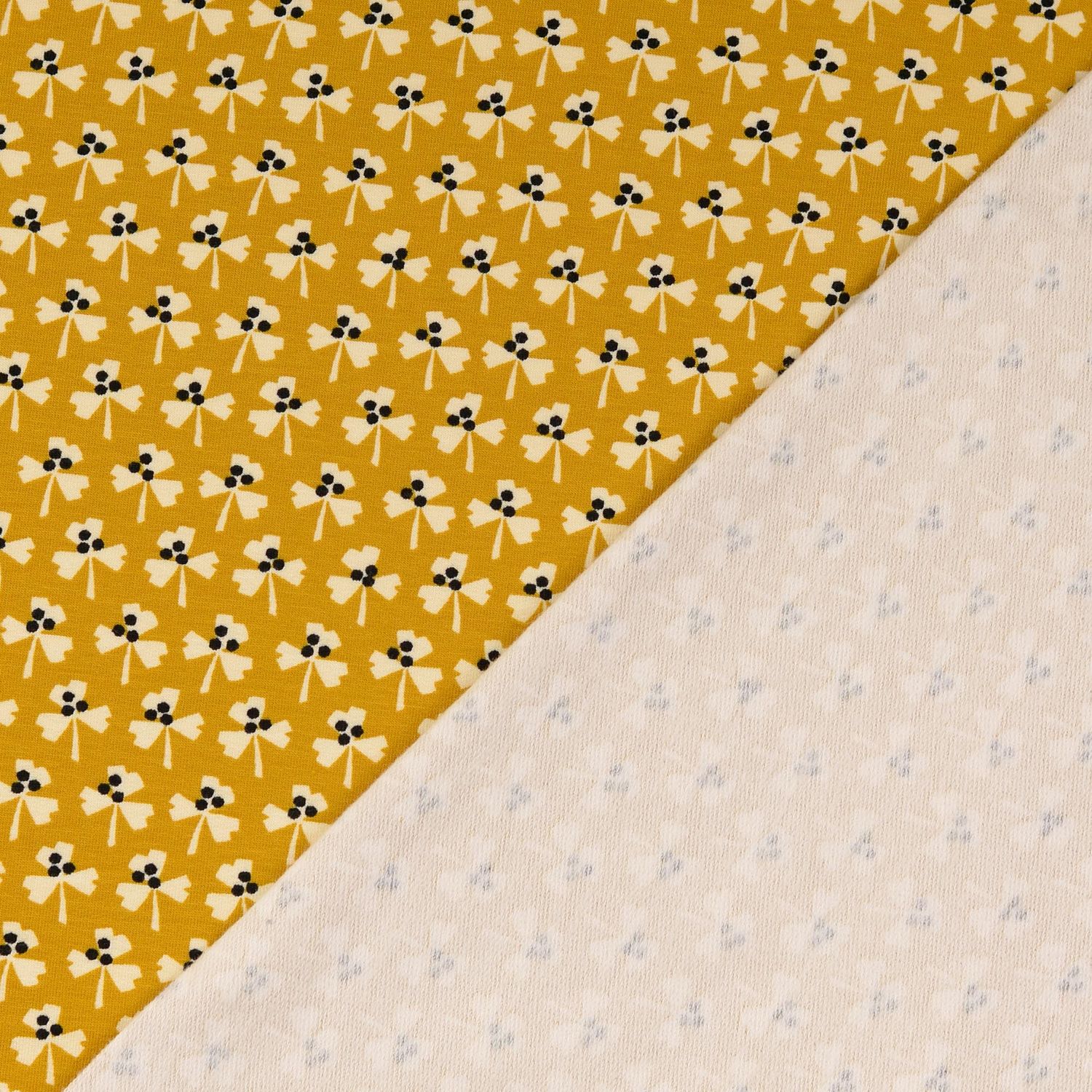 Zomerse French Terry bloemen geel, geborsteld