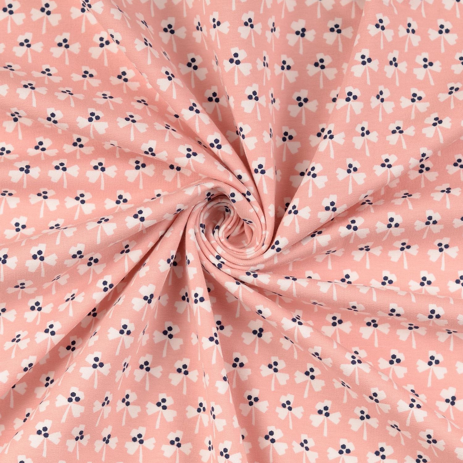 Zacht, romantisch en heerlijk comfortabel: deze geborstelde zomerse French Terry betovert met een droomachtig bloemenmotief in roze. Fijne bloemen in verschillende tinten roze en fuchsia verspreiden zich harmonieus over de stof en worden omringd door zachte groentinten in bladeren en takken. De achtergrond blijft subtiel en laat het bloemrijke ontwerp elegant tot zijn recht komen.