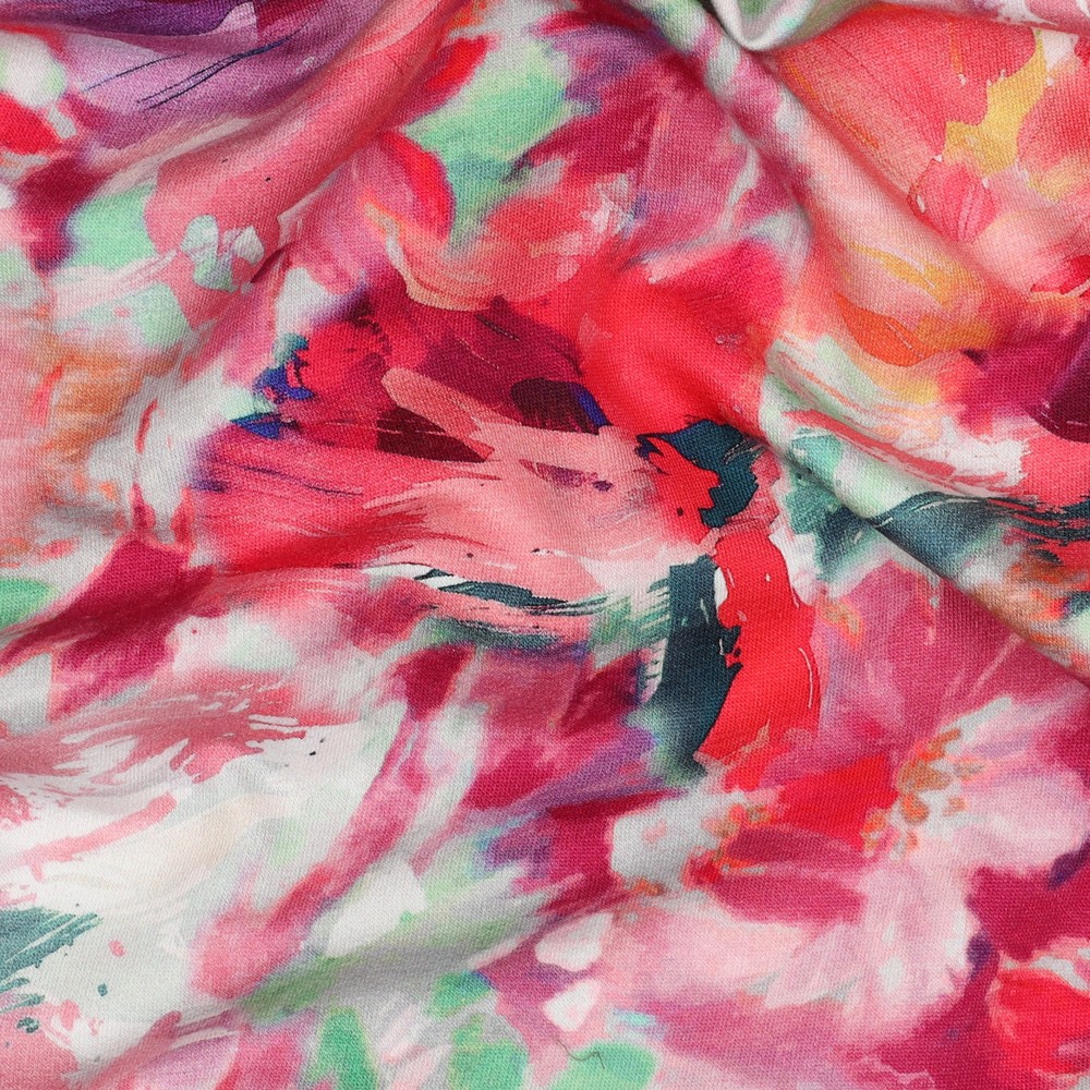 Zomersweat - French Terry digitaaldruk bloemen fuchsia
