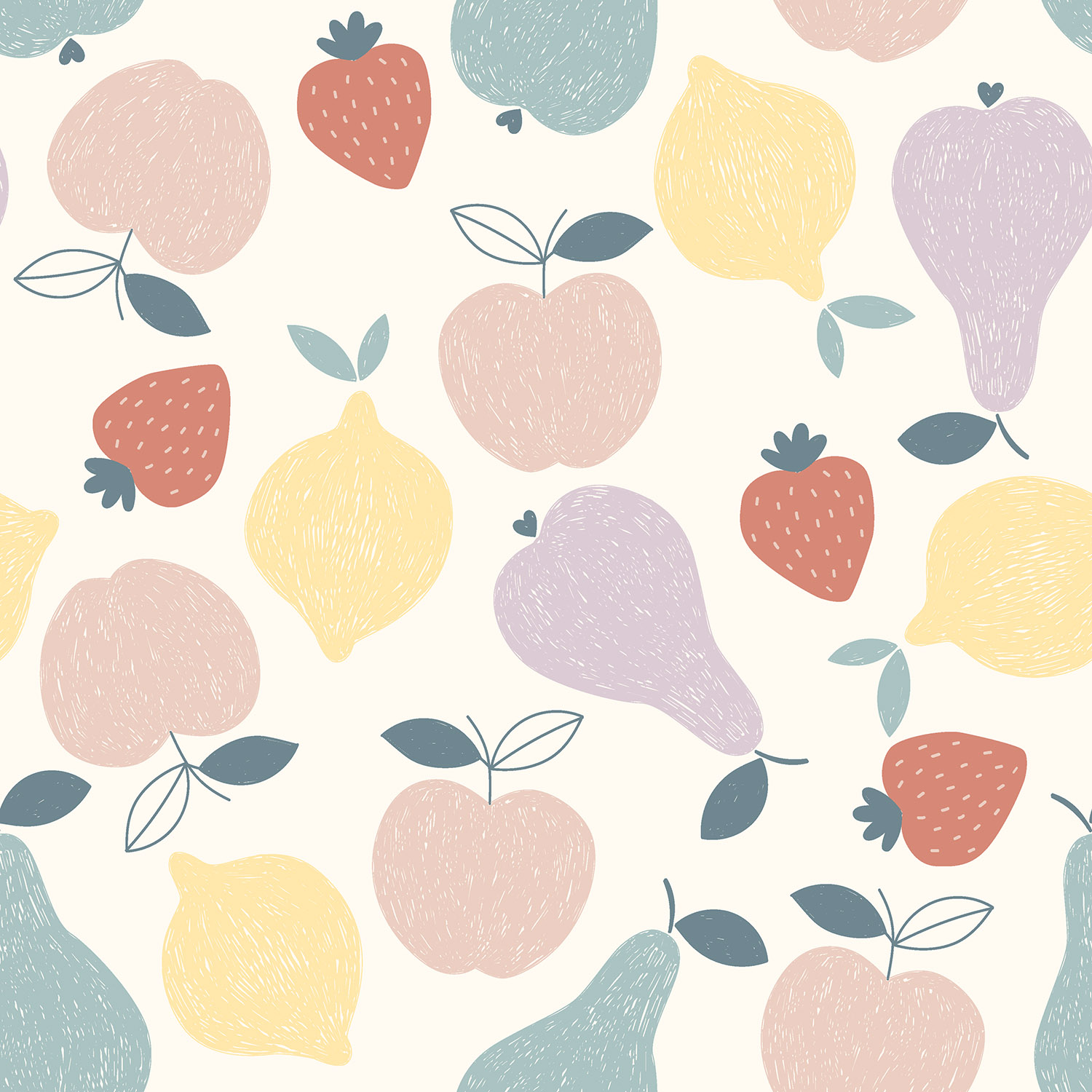 Een fruitige, frisse stofdroom: Op de zachte ecru achtergrond dartelen liefdevol geïllustreerde vruchten in harmonieuze pastel- en natuurtinten. Saprijke sinaasappels, zachte bessen en kleine blaadjes geven het ontwerp een zomerse, lichte uitstraling – perfect voor iedereen die speelse, maar toch stijlvolle patronen waardeert.