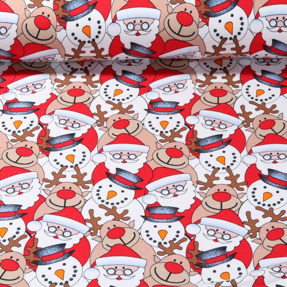 Een winterdroom voor gezellige naaiprojecten: Vrolijke sneeuwpoppen, schattige elanden en vogeltjes dartelen in een magisch winterwonderland op dit zachte, geborstelde sweat. Delicate sneeuwvlokken dansen over de stof, terwijl met sneeuw bedekte bomen en winterse details een gezellige, feestelijke sfeer creëren.
